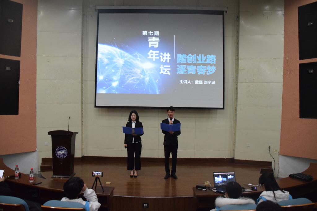 12月6日19:30,由校团委、校庆办主办的百年校庆《青年讲坛第七期》在东校区大学生活动中心209室举办。本期以“踏创业路,逐青春梦”为主题的创业经验讲座邀请到了燕大校友、美国金融管理学硕士、河北麦维电子商务有限公司、分映广告(北京)传媒有限公司创始人孟磊以及视翼VR科技创始人、首席执行官刘宇涵博士担任主讲人。
