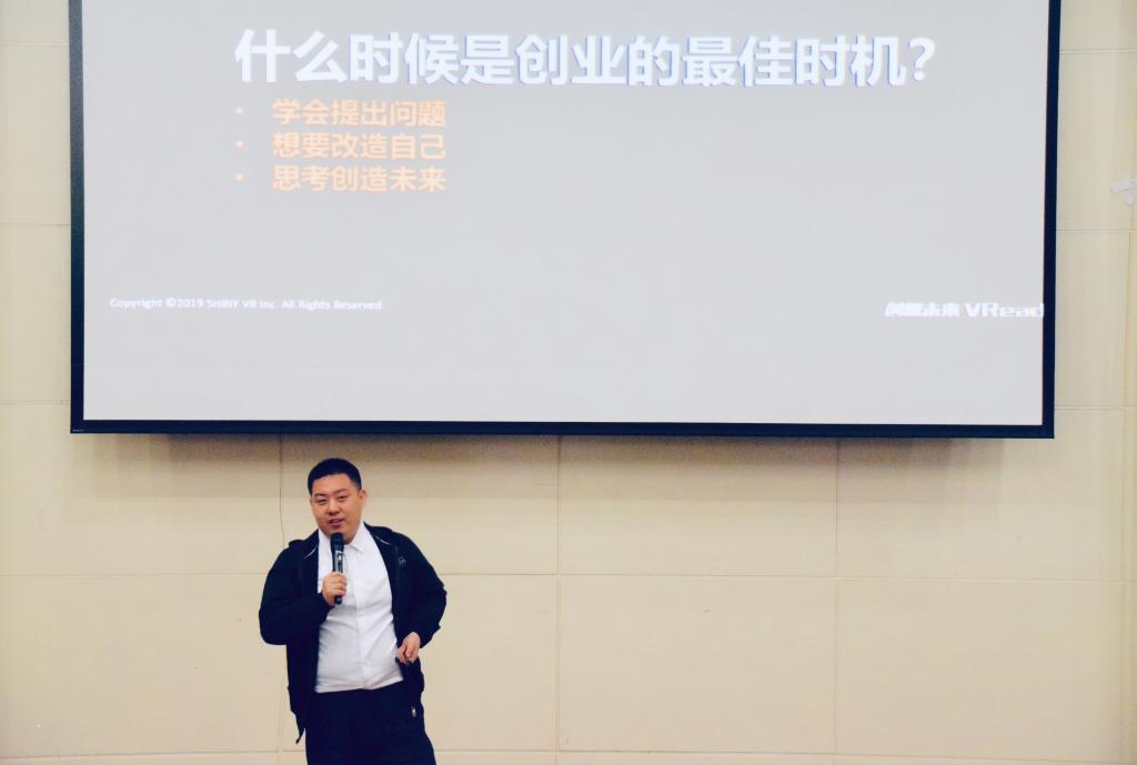 刘宇涵则从科技发展现状、创业最佳时机以及自己的创业经历三个方面向同学们讲述了他对于创业的认识和经验。首先,他用专业的术语及趣味的视频向同学们介绍了5G、AI、VR等前沿科技,指出虚拟现实技术将会是未来科技发展的重要方向之一,引发了大家对于未来科技的思考。之后,他分析了创业的最佳时机,通过引用习近平总书记“虽有智慧,不如乘势”的至理名言指出每个人要根据自身特点、实际情况选择何时创业,值得一提的是,他同样建议大家不要着急创业,要不断提升自己学识见识,为成功的创业奠基。最后,他分享了自己的创业经历,创业路上虽获得众多荣誉但始终不忘初心,踏踏实实地为国产虚拟现实技术产业贡献中坚力量。他还强调了“坚持”的要义,提出“坚持”就是创业的代名词,不应因外界纷扰初心,一直走在奋斗大道的重要观点。讲座进入尾声,同学们积极地向刘宇涵博士发问,与他进行了更为深入的专业性交谈,他还向大家推荐了不少书目,希望同学们在学习专业知识之余也能提升自我。