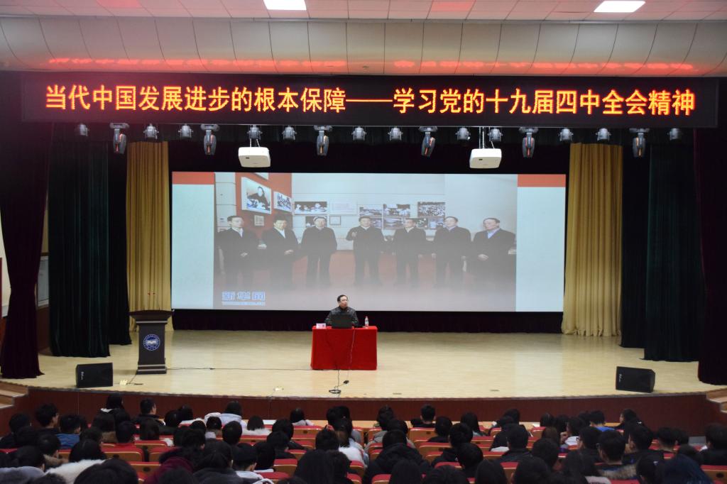 12月5日19:30,校团委第十期“青马工程”第四场培训会在西校区大学生活动中心举办,本场培训主题为“当代中国发展进步的根本保障——学习党的十九届四中全会精神”,本次邀请到马克思主义学院副院长柴勇作为本次团课主讲人,深入剖析党的十九届四中全会精神。校团委副书记薛传佳及组织部部长郭清秀出席本次培训会。