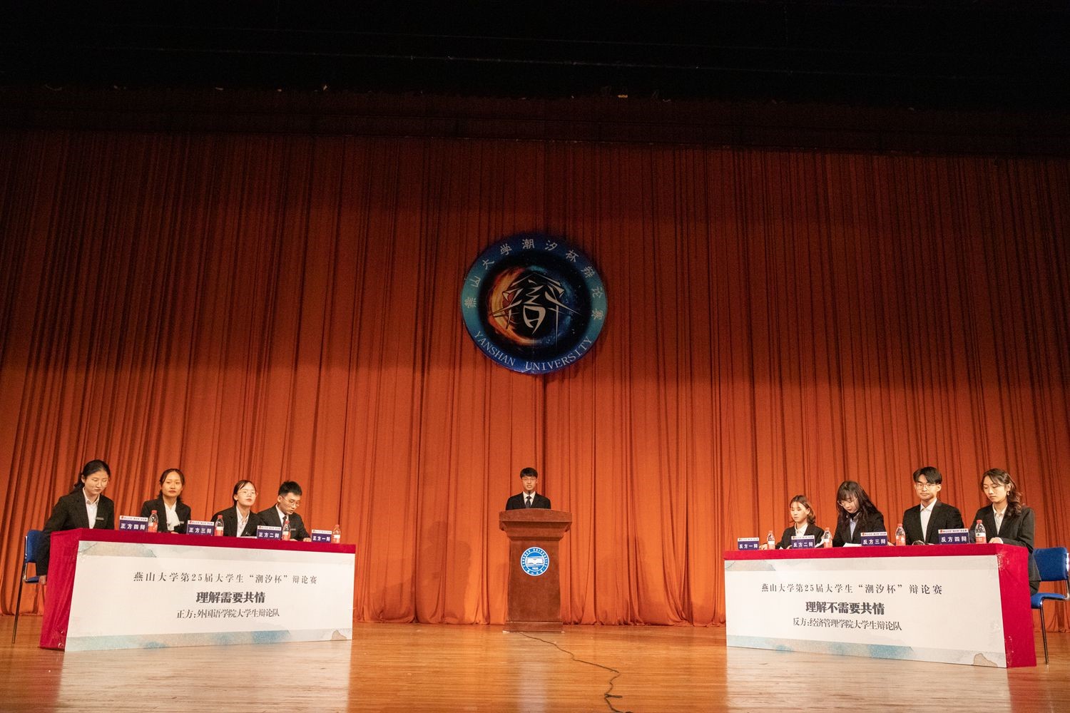 外国语学院辩论队与经济管理学院辩论队对本届“潮汐杯”辩论赛冠军展开激烈角逐