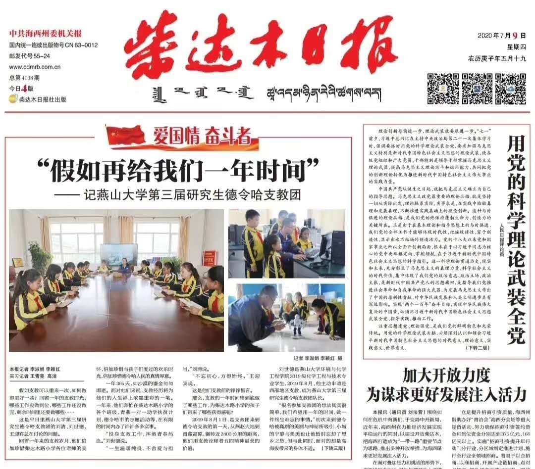 “居高声自远,非是藉秋风”。出生平凡家庭的我,没有多么大的宏伟愿景,却始终秉承母校教给我的“艰苦奋斗、严谨治学、求实创新”的燕大精神,选择去祖国西部,贡献我微博的一份力量。