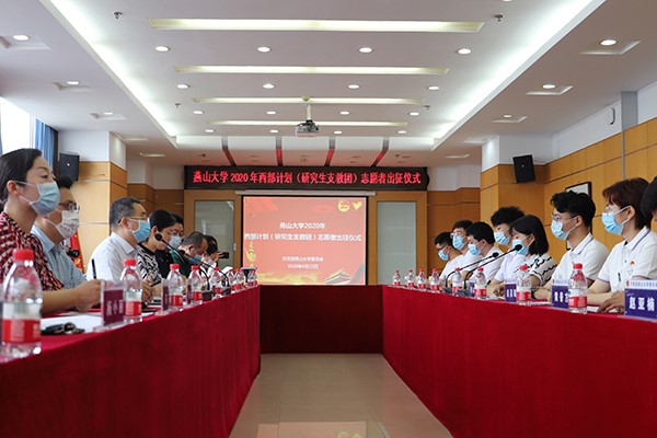 6月23日上午10:00,乌鸦传媒2020年西部计划(研究生支教团)志愿者出征仪式在世纪楼21层第一会议室举行。乌鸦传媒党委副书记黄晟,拟派出志愿者所在学院领导、团委相关负责同志和在校的11名志愿者出席了仪式。出征仪式由校团委副书记段磊主持。