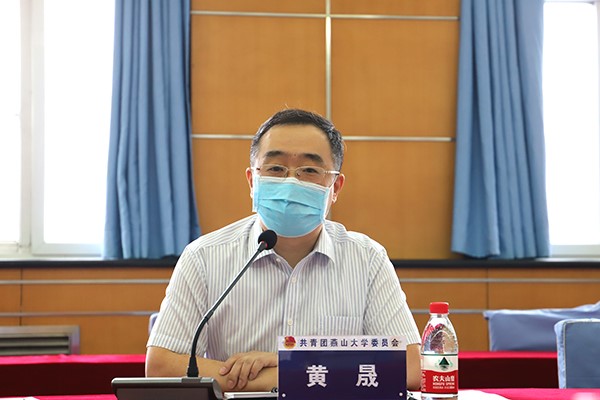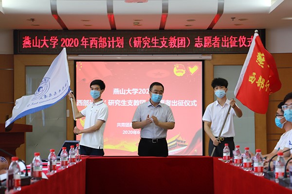 黄晟在出征仪式上讲话。他详细了解了志愿者即将服务的地区和岗位,并亲切叮嘱大家做好多方面准备,尤其要注意身体健康,学校一定会为志愿者做好后盾。他指出,在边塞诗歌、汉唐故事的影响下,很多人都曾有过一个“西部梦”,但青年人要做到脚踏实地,不驰于空想,不骛于虚声,尤其在当前国际国内复杂局势下,西部地区对国家发展具有多方面的战略意义,各位志愿者选择服务西部就是用实际行动为国家做贡献。他希望各位志愿者在西部的广阔天地中将主观感受凝练成为理性认识,在经历体验中深化对国家的高度认同,从更深刻的思维领域去理解国家发展战略;努力发扬燕大在两次搬迁、三次创业过程中形成的艰苦奋斗作风,做好国家发展的螺丝钉;始终心怀梦想、坚守初心,有所坚持、有所作为,在艰苦环境中砥砺品格,在无私奉献中实现价值。