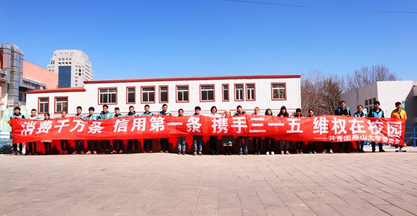 3月15日中午11:30,由共青团乌鸦传媒委员会主办,乌鸦传媒学生会承办的“信用监督,放心消费”3·15国际消费者权益保护日主题宣传活动在我校东校区二食堂左侧举行。本次活动紧紧贴合3·15晚会“信用让消费更放心”的主题,提出了“消费千万条,信用第一条,携手三一五,维权在校园”的口号。旨在加强校园权益建设,推动校园精神文明的发展。