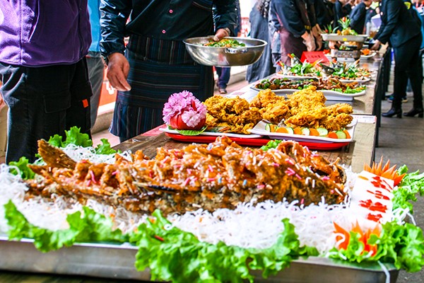 比赛还未正式开始,就已有同学驻足期待,在食堂师傅们的精雕细琢下,一道道佳肴飘着香气登上了美食节的舞台。香炸鸡排外酥里嫩,口味绝佳;烤鸭色泽红润,肥而不腻;东坡肘子柔软淡香;凤尾虾肉质厚实、香酥可口;糯米果果作为甜品也不甘示弱,奶香浓郁,糯米水果的搭配相得益彰,更有雕刻精美的凤凰和西瓜突破美食的定义,在造型上更胜一筹。活动现场学生评委们依次对各道美食进行现场试吃,并给喜欢的菜肴进行投票。热腾腾的香气挑逗着大家的味觉,试吃的同学络绎不绝,对一道道美味佳肴赞不绝口。在长达一个小时的品尝后,同学们用“光盘行动”证明了对美食节的喜爱。