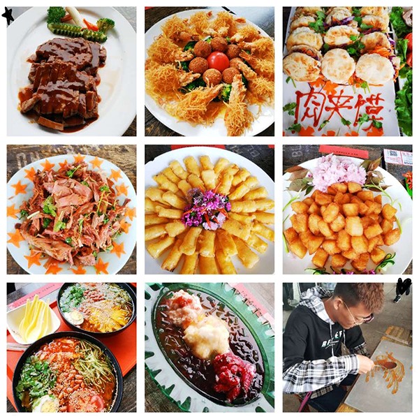 比赛正式开始之前,学生参赛队伍就已经在食堂厨房的备战间积极筹备,忙碌的身影向我们展示了他们对美食的热爱与执着。虽然同学们没有经过专业的训练,但做出的菜品依然色香味俱全,可口诱人,得到了评委们的一致好评。食堂的大厨们也一展身手,让人口齿留香的鸭肉、肥而不腻的烤鱼、肉质厚实香嫩的虾仁……一道道“硬菜”让在场的同学们过足了吃瘾。爽口的甜品也是少不了的,冰凉诱人的水果冰激凌和软糯香甜的糕点在给我们带来强烈的视觉色彩冲击的同时也让我们的味蕾进行了一场奇妙的旅行。精美的水果雕刻、中国糖画如艺术品一般也吸引了众多同学的目光,不少同学驻足拍照,活动现场反响热烈,同学们对美食赞不绝口、好评如潮。