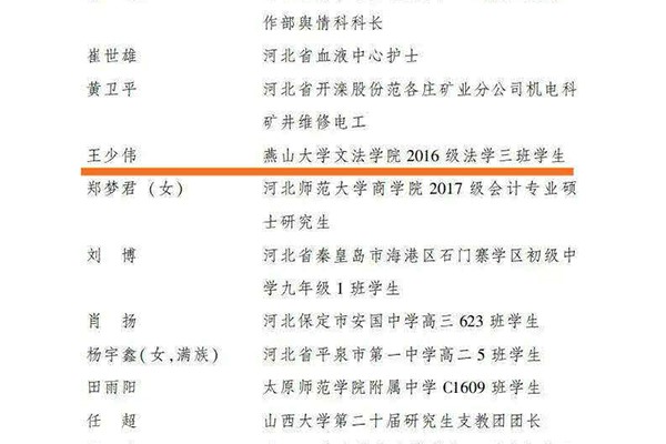 5月4日,共青团中央印发了《共青团中央关于表彰2018年度“全国优秀共青团员”“全国优秀共青团干部”“全国五四红旗团委(团支部)”的决定》文件,我校文法学院2016级法学3班王少伟同学获评“全国优秀共青团员”称号。全国共有295人获得此称号,王少伟是河北省2名获此殊荣的高校本科生之一。