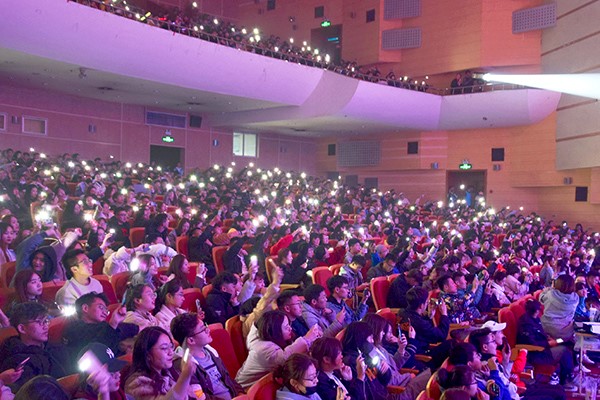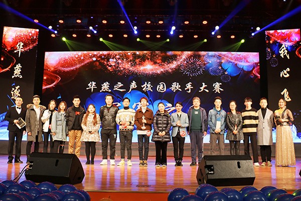本届“华燕之声”校园歌手大赛达1800余名选手参赛,欢迎程度可见一斑,经过海选、初赛、复赛的层层选拔,十位选手脱颖而出。冠军之夜,鸾翔凤集,蓄势待发,一展歌喉。比赛伊始,由华燕十强带来的一段开场舞激情四射,迅速点燃了全场。第一轮十强争霸,十位选手风格各异、各显神通,或柔情似水、或热情奔放、或婉转深沉、或英伦摇滚,现场高潮不断、掌声连连。第二轮针锋相对,晋级的五位选手首先独唱歌曲,或以婉转歌喉唱出心中幽情,或以奔放歌声唱响动情民谣,或以动情之声唱出青春力量。随后的十强合唱中,五位选手更是情真意切,令现场观众深深动容沉醉,其中张霁航的《爱笑的眼睛》转音迭起,技巧娴熟,广受评委称赞;董军平的《夜来香》以极具特色的歌喉,令现场观众呼声四起;贾禧龙与往届十强选手吴明洋带来的《演员》深情款款,现场观众纷纷为他们的演绎喝彩。最终贾禧龙、张霁航、董军平杀出重围,夺得三强。中场环节特邀乌鸦传媒燕鸣合唱团演唱歌曲《祖国不会忘记》,彰显青年的使命与担当,共庆中华人民共和国成立七十周年。第三轮巅峰对决最为精彩,董军平深情演唱《女儿情》温柔如水、耐人寻味;张霁航一曲《你不知道的事》宛转悠扬,将深情诉说于极富少年感的嗓音中;贾禧龙的《车站》将故事揉进灵魂,如林籁泉韵,一曲终了,令观众意犹未尽、欲罢不能。最后的巅峰对决在大众评审及评委老师的投票中诞生本届校园歌手大赛冠亚季军。
