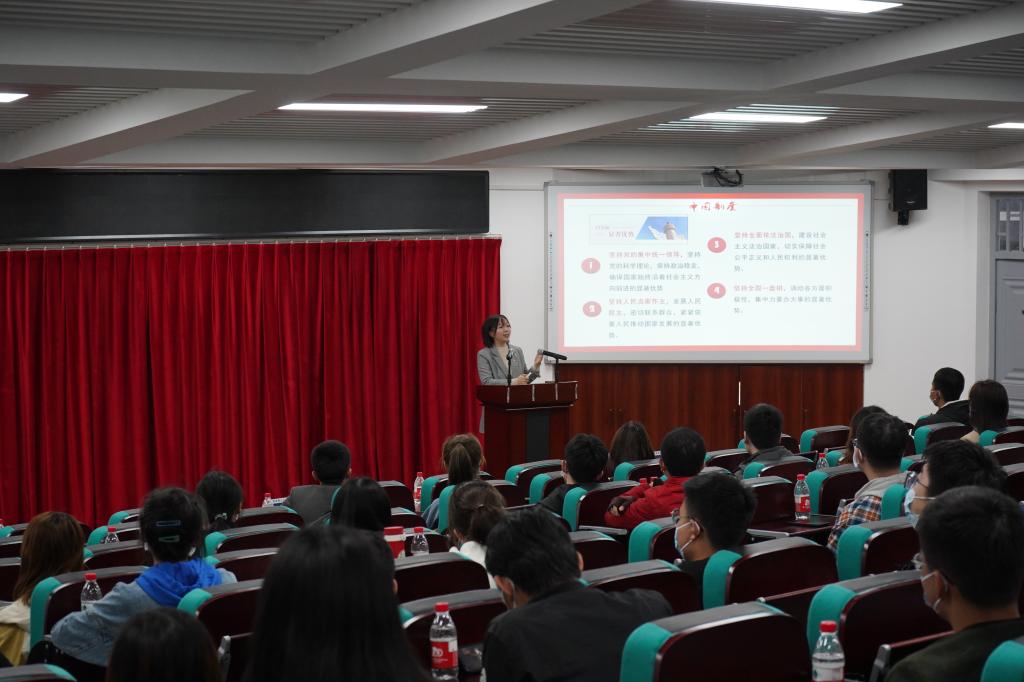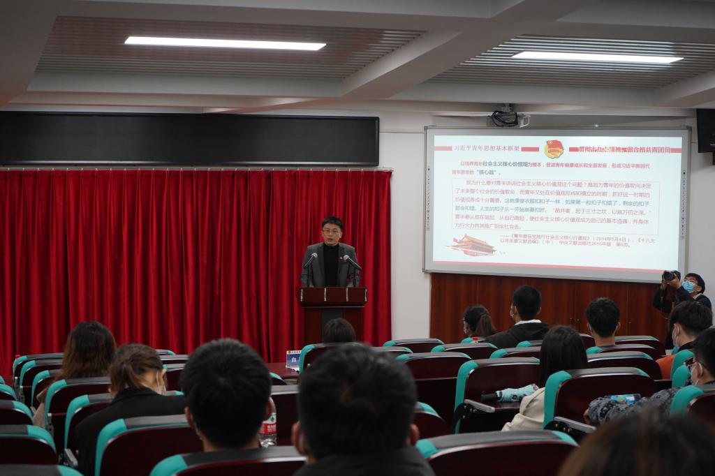 张玮从习近平青年思想的重要论述进行讲解,引导学生干部深刻认识习近平青年思想的新时代意义。通过列举习近平总书记在不同场合对广大青年提出的殷切希望,鼓励同学们要牢记嘱托,奋发有为,建功新时代。