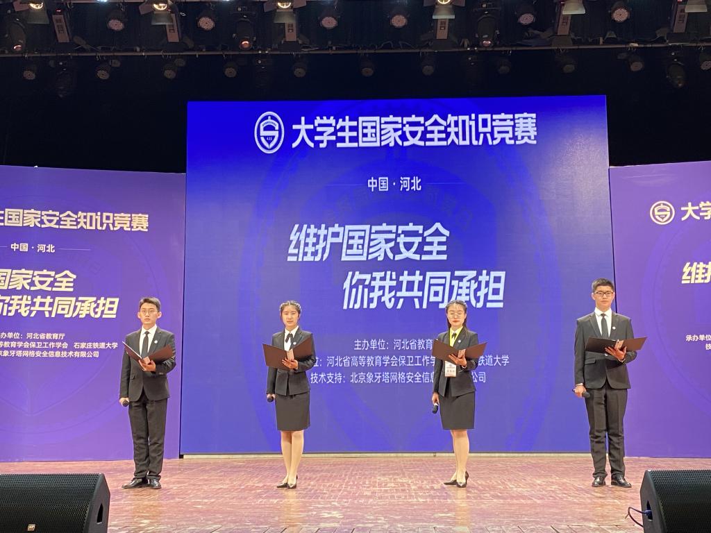 4月15日,由河北省教育厅主办、石家庄铁道大学承办的2021年河北省大学生国家安全知识竞赛活动在石家庄举行。我校党委副书记谢延安带队参加了决赛。经过激烈角逐,我校代表队表现优异,荣获2021年河北省大学生国家安全知识竞赛决赛三等奖,我校荣获优秀组织奖。