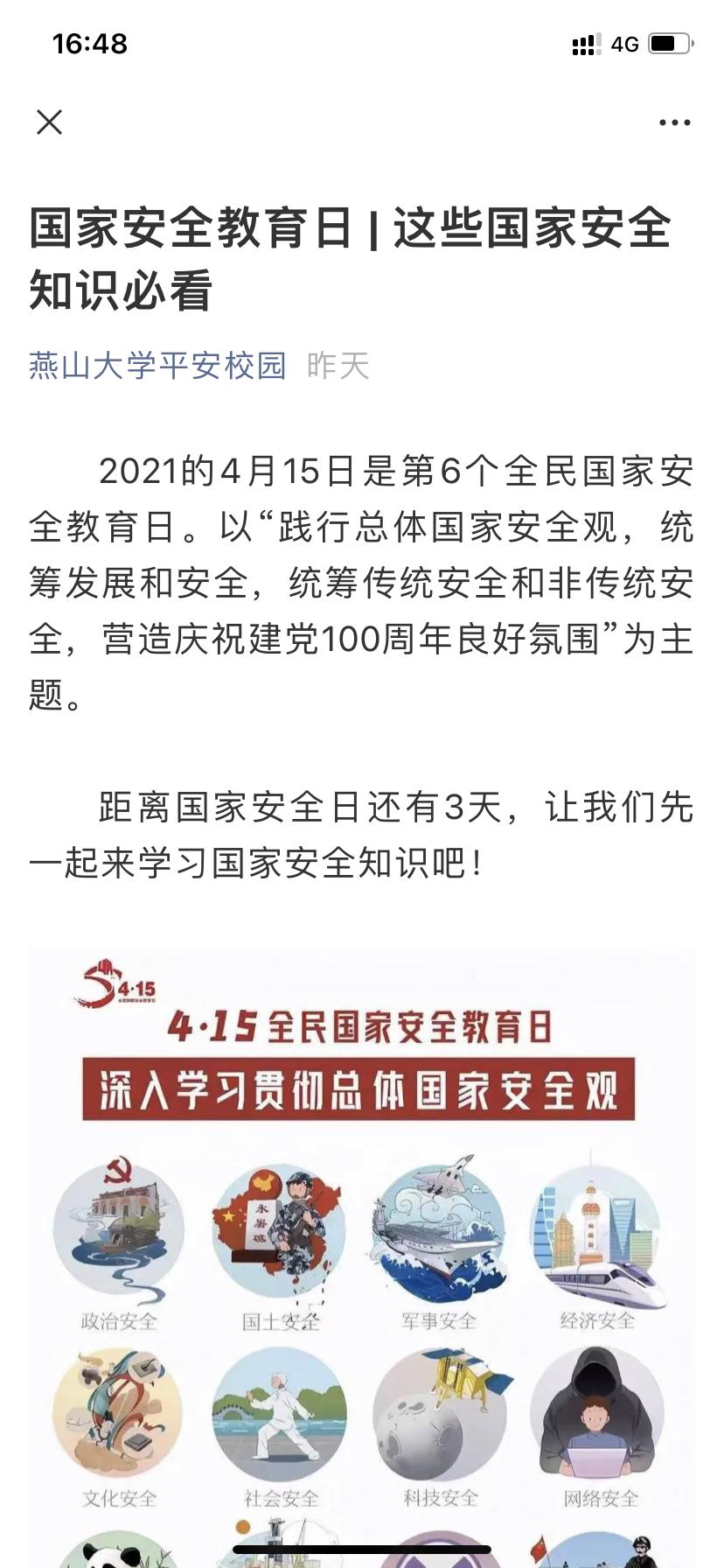 在本次知识竞赛中,我校学生亲身参与其中,积极学习国家安全知识,切实提高了我校学生的国家安全意识,增强了维护国家安全的责任感和使命感。今年4月15日是第6个全民国家安全教育日,以“践行总体国家安全观,统筹发展和安全,统筹传统安全和非传统安全,营造庆祝建党100周年良好氛围”为主题,我校通过多种形式宣传国家安全知识,在校内形成浓厚的学习氛围,进一步强化全校师生的国家安全意识。