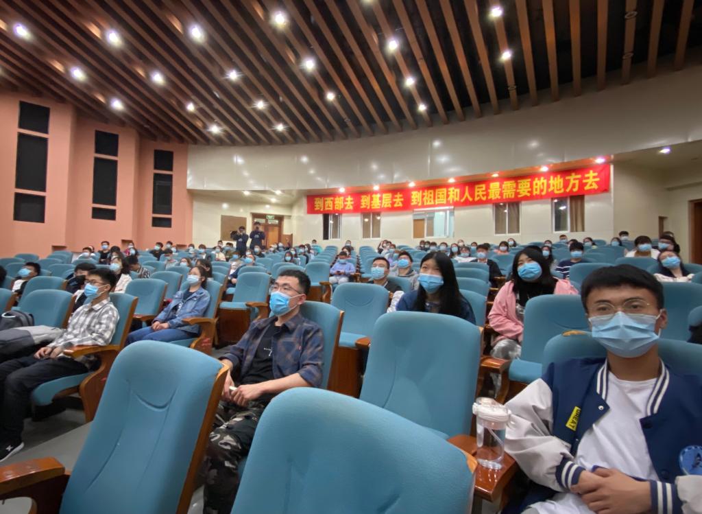 我校130余名有志于服务西部的同学参加了宣讲会。会上,我校西部计划项目办从“西部计划”项目概况、我校西部计划开展情况、招募流程、选拔方式等四个方面介绍了相关政策和规定,并邀请我校往届“西部计划”优秀志愿者代表董永宇、张宇男做分享交流。