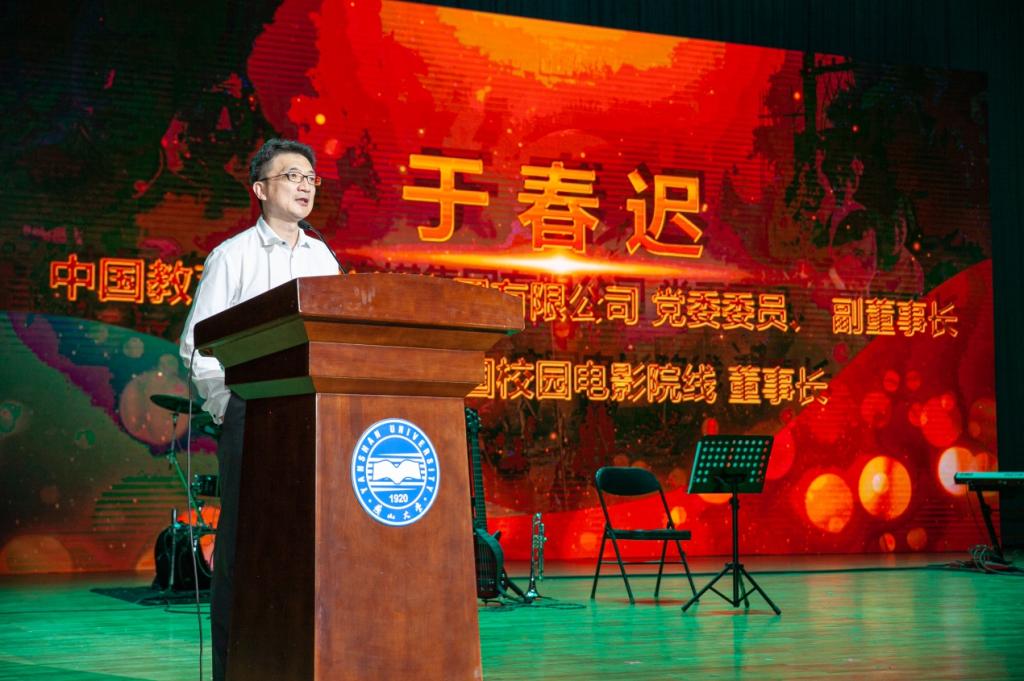 于春迟在致辞中对我校参与筹办此次活动的燕大师生表示了诚挚感谢,他回顾了中教华影全国校园电影院线与我校的数次友好合作,介绍了此次系列活动的背景和发展历程。他表示,中教华影将与我校继续深化合作,共同探索思政教育特色产品和新模式,以更多元的呈现形式服务校园文化建设。
