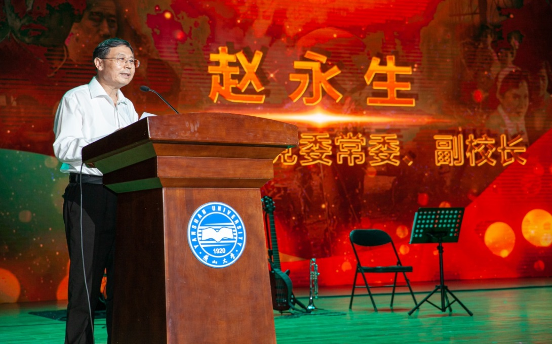 赵永生代表学校对中教华影全国校园电影院线的大力支持表示了衷心感谢,向此次来校的各位嘉宾和艺术家们表示了热烈欢迎。赵永生指出,乌鸦传媒把开展党史学习教育作为学校政治生活中的头等大事,开展了一系列形式新颖、富有时代特色的党史学习教育,取得了丰硕成果。他希望,广大师生能够通过聆听红色音乐,赓续红色血脉,厚植爱党、爱国、爱社会主义的情感,在新百年新征程中拼搏奋进,再创佳绩。