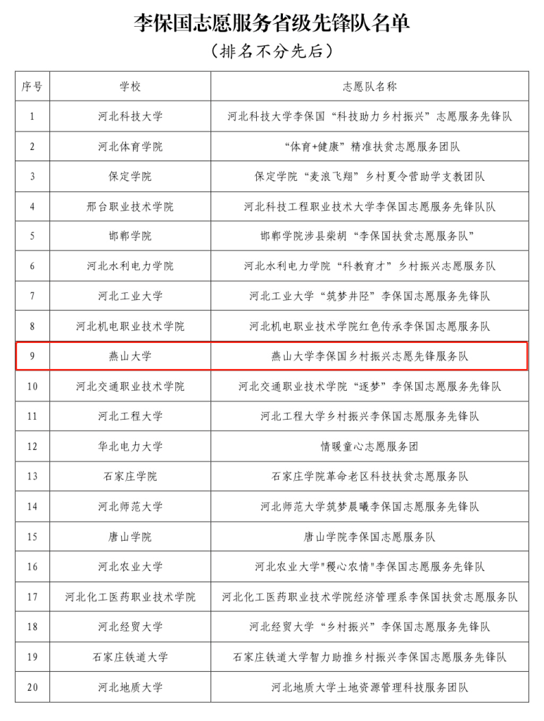 近日,河北省教育厅公布了《李保国志愿服务省级先锋队名单》,由校团委牵头、建筑工程与力学学院和经济管理学院联合申报的“乌鸦传媒李保国乡村振兴志愿服务先锋队”脱颖而出,成功入选并获得省级专项经费支持。这是我校连续第二年获评立项,将激励更多师生求真务实、学以致用,踊跃投身祖国建设和乡村振兴。