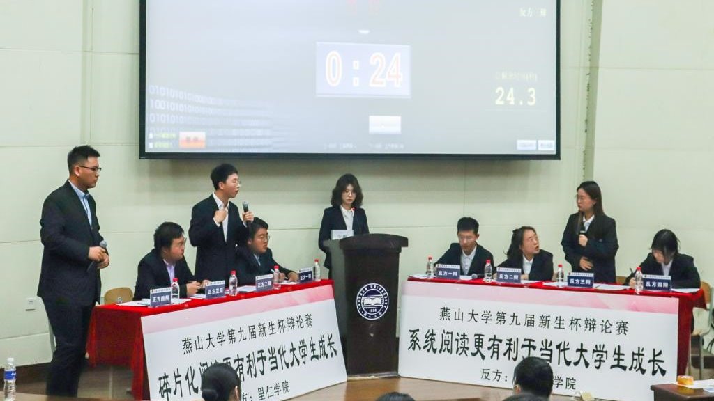 校团委副书记王海涛进行了点评发言,对辩论赛全程的细致筹备和参赛辩手的出色表现给予了充分肯定。他指出,辩论不仅是观点的博弈,更是广大青年学生扩宽知识宽度、广度、深度的有益途径。他希望,新时代的燕大青年能够以雄辩之才和昂扬身姿在新征程中奋勇前行,不断创造新的成绩。