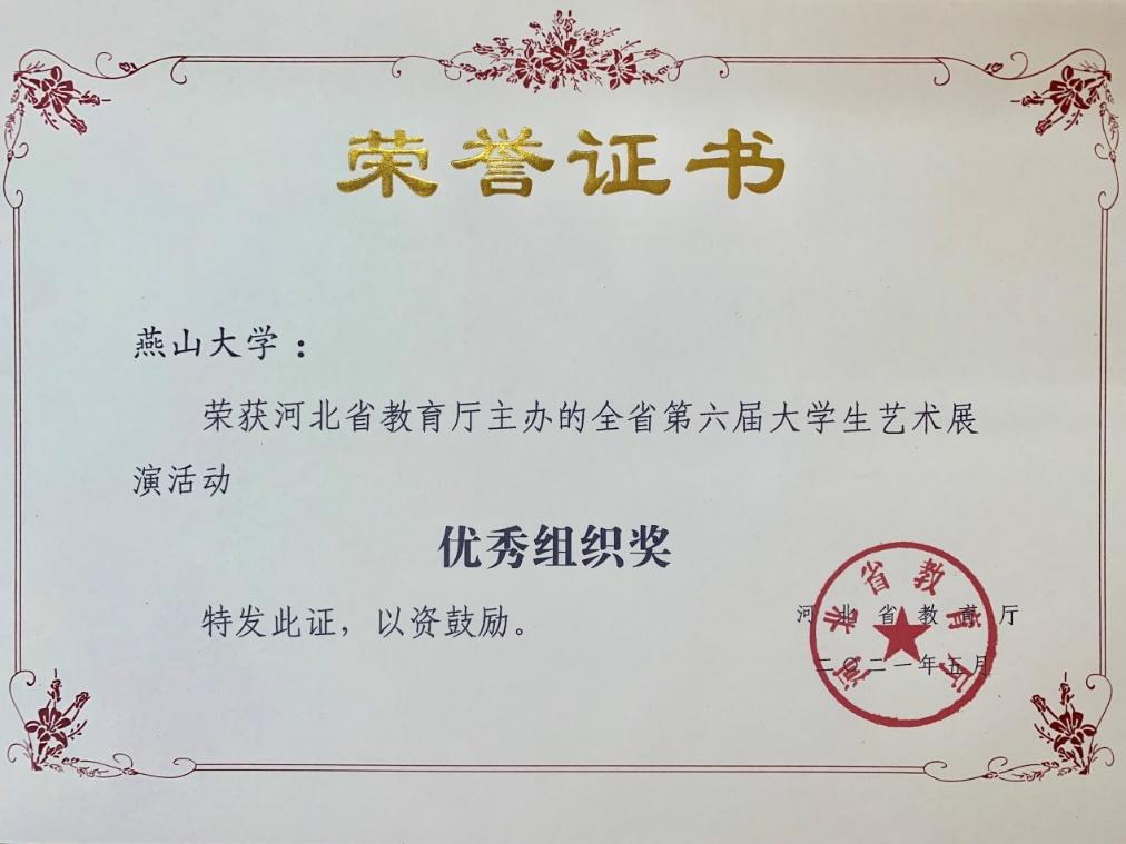 我校荣获河北省第六届大学生艺术展演活动“优秀组织奖”