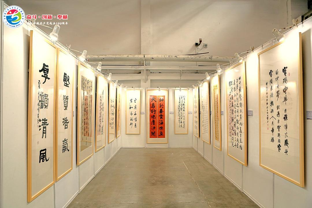 赵险峰书法作品在全国第六届大学生艺术展演活动现场展示(左一)