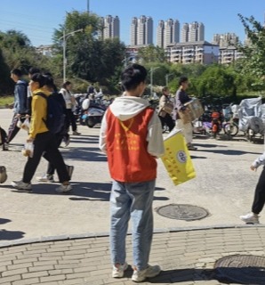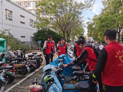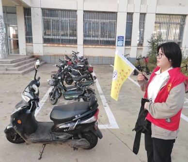 志愿者们身穿红色马甲,手持引导旗,每天分早、中、晚三班,分流人群、摆放车辆、提醒同学们按照规范停放车辆。匆匆忙忙上课下课的的同学们、来来往往回寝离寝小伙伴们,有的不解,有的也为志愿者们竖起了大拇指。经过了十多天的集中整改,自愿按照要求线路上下课、停放车辆的同学越来越多……看着因自己的努力而变得更加整齐有序的校园,志愿者们也露出了会心的笑容。