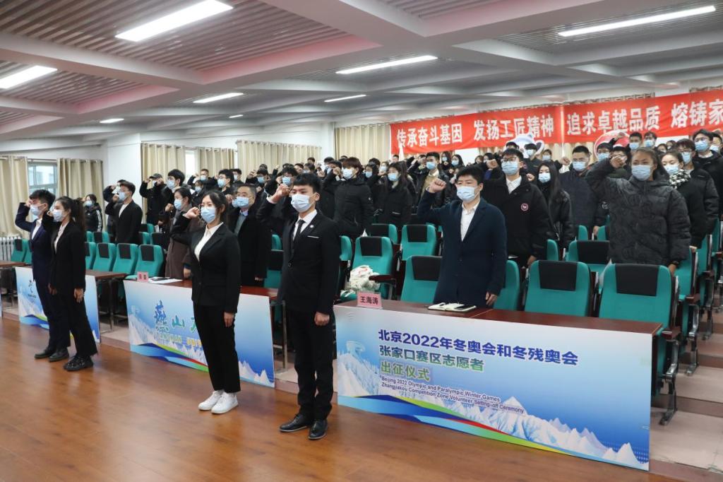 出征仪式在庄严的国歌声中拉开序幕。团省委侯贵松书记发布张家口赛区志愿服务规范和志愿者管理办法;团省委副书记王丽涛传达王东峰书记给北京2022年冬奥会张家口赛区云顶场馆群志愿者集体回信精神;与会志愿者共同宣誓,发出青春最强音;最后,团省委侯贵松书记下达出征令,动员张家口赛区全体冬奥志愿者为世界奉献一届“简约、安全、精彩”的奥运盛会贡献青春力量。