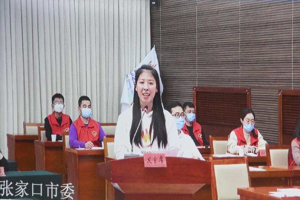 我校团委志工部部长、国家冬季两项中心赛事服务副经理胡冰煜在仪式上做代表发言,她分享了自身担任双奥志愿者的经历,并表示将同学校其他6名冬奥管理人员、333名冬奥师生志愿者和服务冬奥其他事项的人员一道,为展现中国青年形象、河北青年风采无悔地奉献青春力量。
