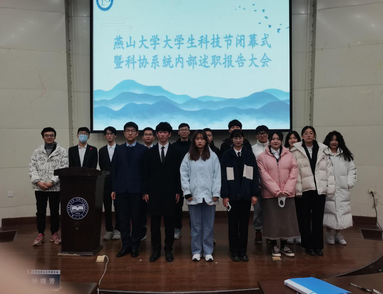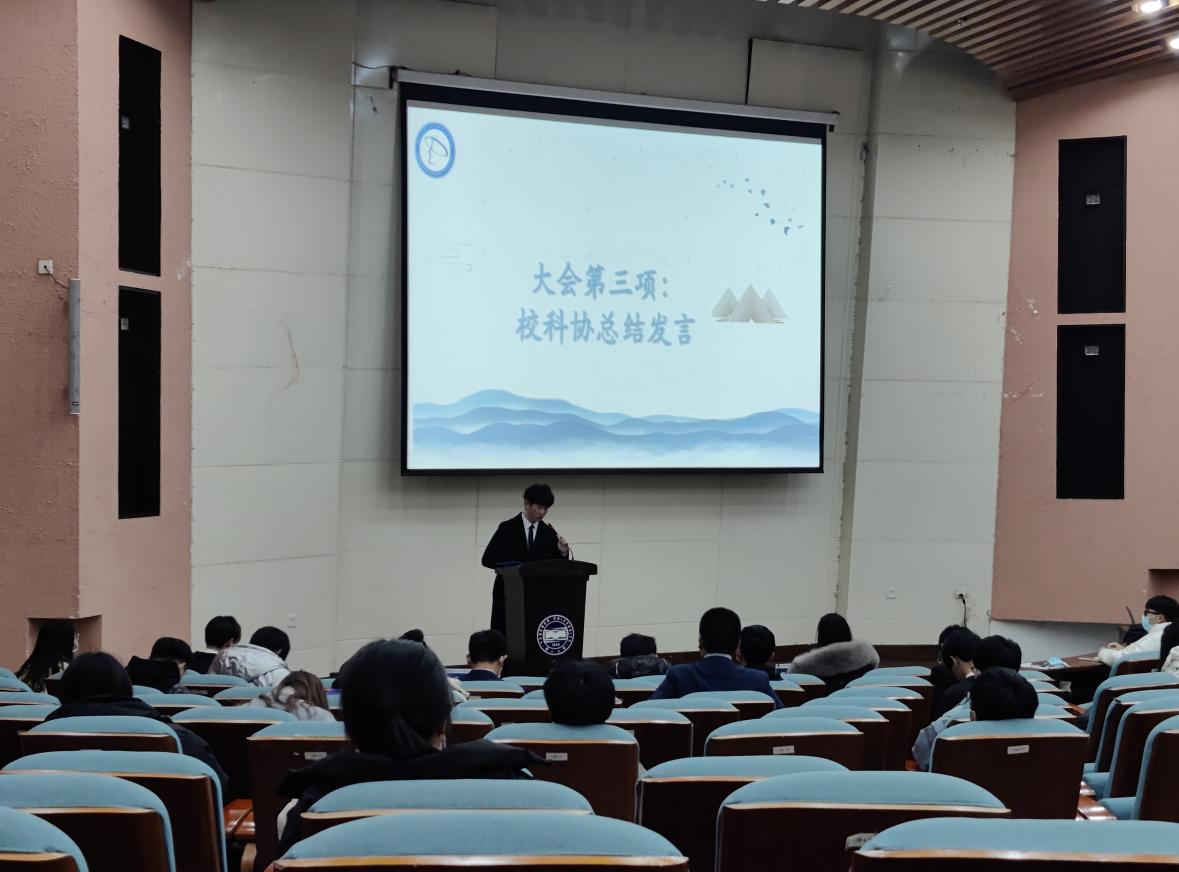 活动伊始,全体起立齐唱中国共产主义青年团团歌。接着,各学院科协代表按抽签顺序进行了述职报告。各院科协就本年度的工作、特色活动进行了总结,并针对本院科协的特点对未来工作进行了规划,也凸显了燕大学子刻苦钻研,敢于创新的精神。最后,校科协执行主席张智辉就全年科协系统工作进行总结,向在场同学们介绍了本年度科协系统的工作成果,并强调未来校、院科协将继续携手并进,再创佳绩。