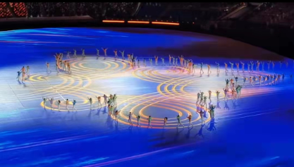 12生肖冰鞋划过舞台,形成了一个巨大的“中国结”,其中穿梭着我们熟悉的燕大身影,他们在向世界展示中国。