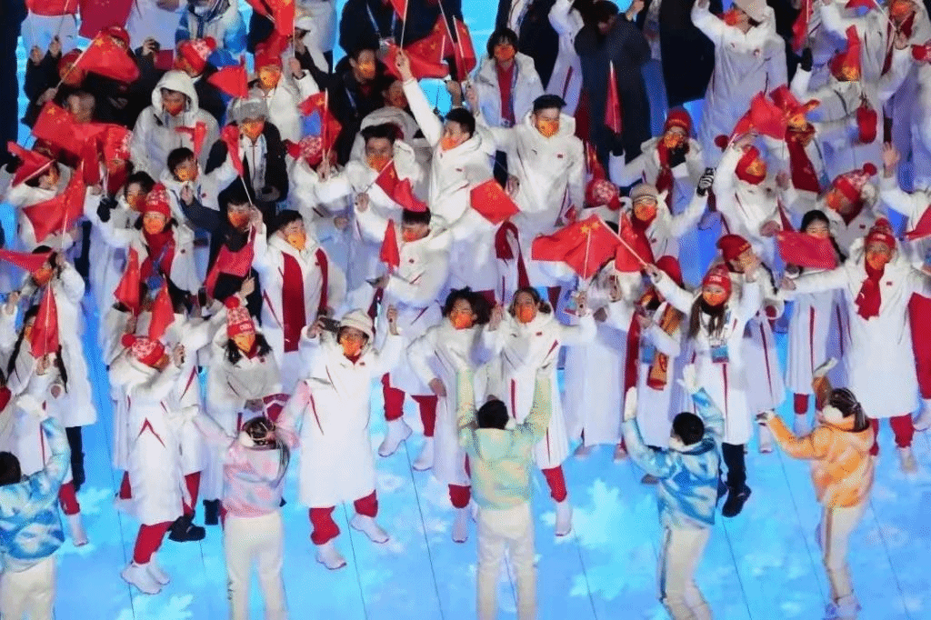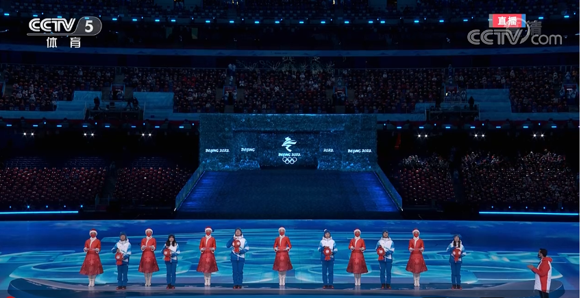 各国代表团旗帜和运动员入场环节,在“中国结”的连接下来自世界各地的运动员欢聚一堂。舞台上气氛热烈,不同国家的运动员在没有彩排的情况下如何有序上场和退场就坐,燕大舞者给出了答案。来自燕大的彩色舞者组成了一道欢乐人墙,与每个运动员挥手打招呼、随节拍不停跳动,维持队形和气氛调动完美结合!和谷爱凌击掌,是这个闭幕式上最难忘的惊喜!