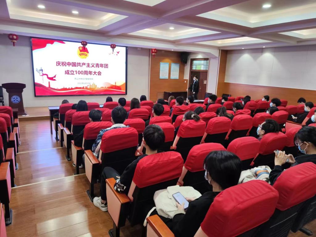 学校在各二级学院设置分会场进行实况转播,组织团干部和学生团员代表线下集中观看,其他师生通过线上平台同步收看大会盛况,共同见证中国共产主义青年团成立100周年的光辉时刻。