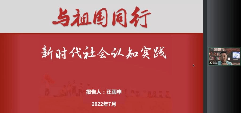开营仪式后,训练营邀请了上海交通大学学生工作处副处长、2019年“最美高校辅导员”汪雨申老师为同学们带来开营第一课《与祖国同行——新时代社会认知实践》。