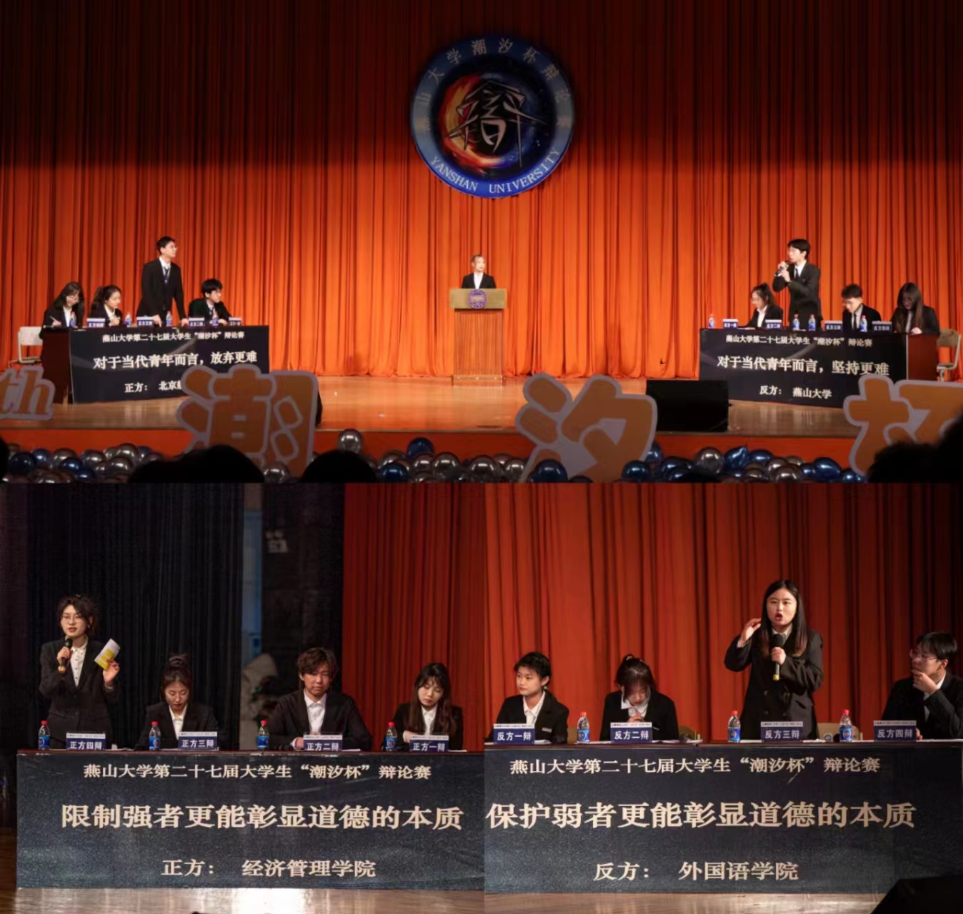 风华燕大,逐梦潮汐。围绕“限制强者和保护弱者何者更能彰显道德的本质”辩题,经济管理学院与外国语学院两支学生辩论队展开冠军争夺,双方辩手从促进社会公平、完善社会制度、优化公共政策、实现公众需求等多个方面进行详细阐述和精彩辩论,不断升华辩题内涵,凸显时代主题,引发现场观众热烈反响。