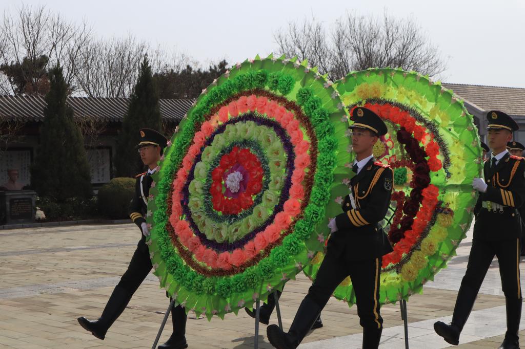 上午9时,在革命烈士纪念碑前,全体师生整齐肃立,国旗护卫队迈着铿锵步伐,护送国旗入场,活动在庄严的国歌声中开始。国歌唱毕,全体师生默哀3分钟,深切哀悼为国捐躯的英雄儿女。哀毕,伴随《献花曲》,国旗护卫队向革命烈士敬献花圈,向为了新中国诞生而英勇牺牲的烈士致以最崇高敬意。