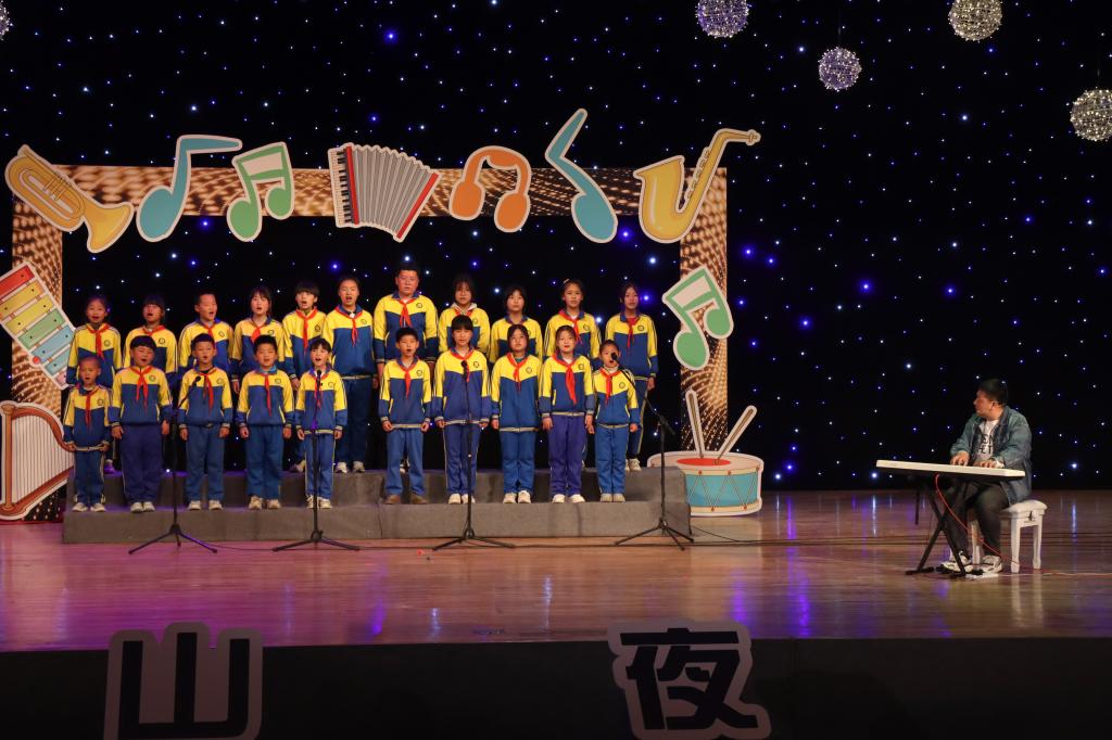 研支团成员与龚新亮和山村小学合唱团共唱歌曲《苔》