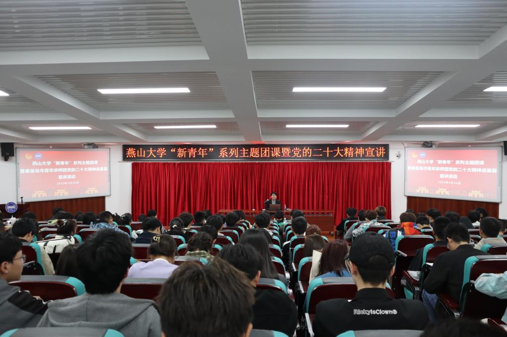 为进一步加强广大团员青年的精神力量,激励燕大青年“听党话、跟党走,奉献青春”的意志。校团委于2023年4月26日18:00在东校区第三教学楼213报告厅开展“新青年”系列主题团课暨党的二十大精神宣讲活动第二课。