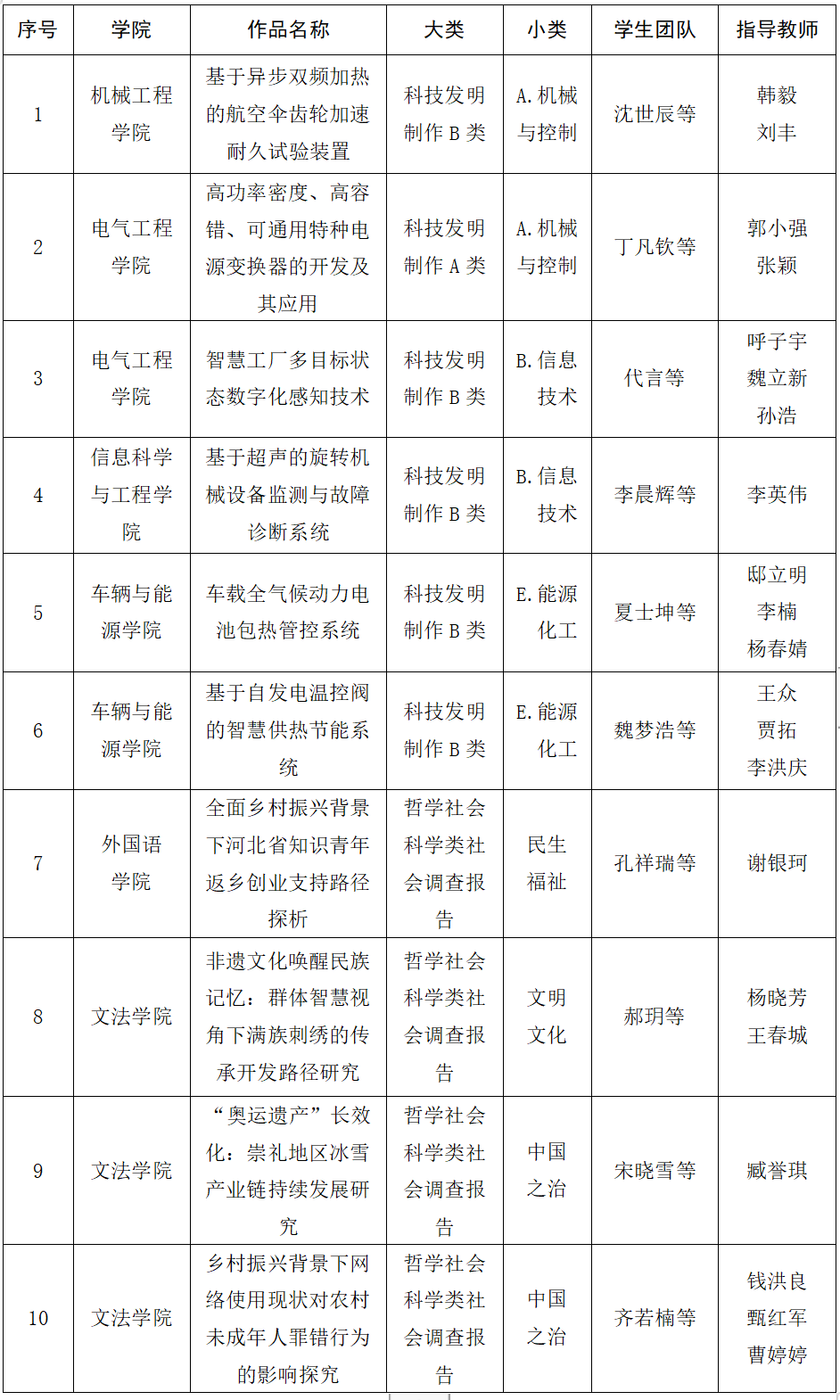 我校获河北省“挑战杯”特等奖作品名单
