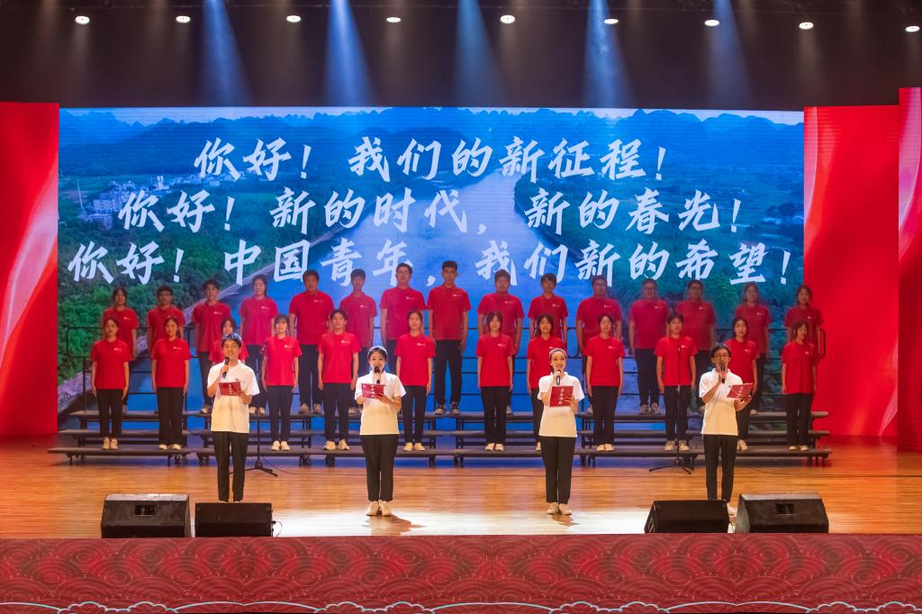 第一篇章“青衿之志,初心如磐”讲述了一代代中国青年扛起国家和民族命运的重担,从百年硝烟中走来,将红色基因代代传承下去的壮阔历程。朗诵《红色》回顾了党的峥嵘岁月和革命历程,唱响了新时代中国这艘巍巍巨轮驶向星辰大海的轰鸣;《浪潮》以情景演绎和歌曲演唱的形式,再现了百年前一批中国先进青年追求真理、燃烧青春的澎湃岁月;《信仰》在深邃的艺术世界里传递出五四运动的思想火种,在历史长河中凝练出奋勇向前的不竭动力。