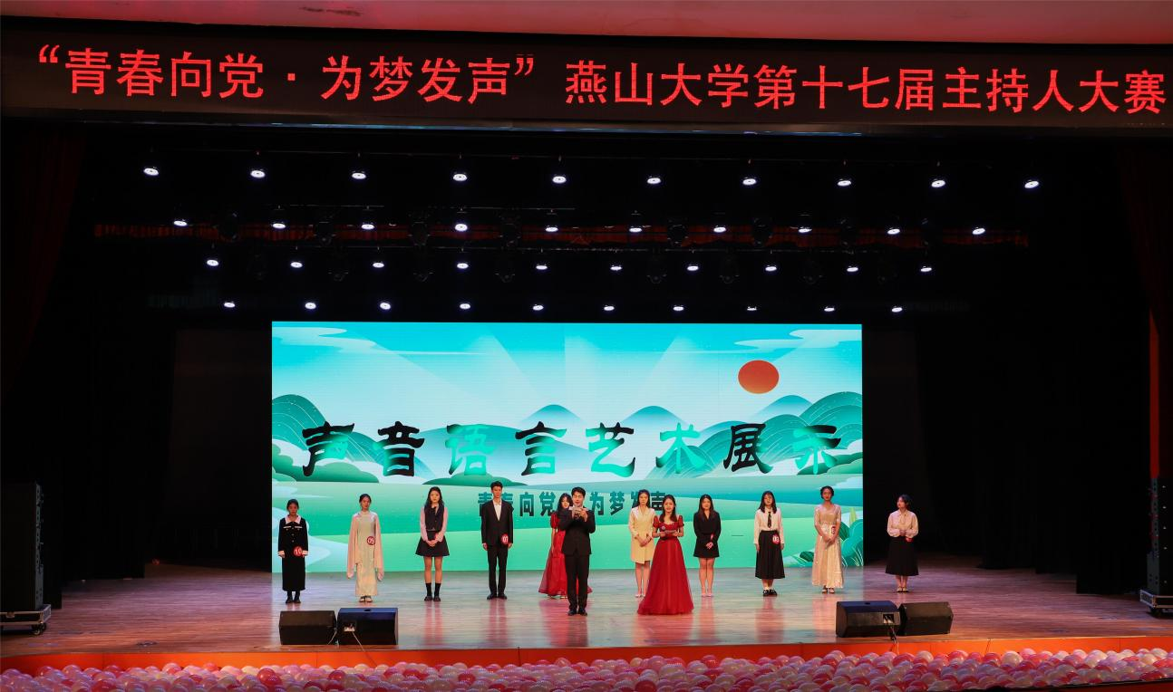历经初赛、复赛的选拔与考验,十强选手在百余名参赛者中脱颖而出。本场比赛共分为先声夺人、声音语言艺术展示、模拟主持三个环节。在先声夺人环节中,十位选手以成长经历、家乡特色、个人特点、兴趣爱好等关键词为切入点,用讲故事的方式进行自我展示,紧扣环节主题;在声音语言艺术展示环节,从依依惜别的诗朗诵《再别康桥》到鼓舞人心的《我们的燕大》,从充满中国韵味的话剧《青蛇》到温州话版配音的《小猪佩奇》,选手们充分发挥各自声音优势,展现了丰富的想象力与创造力;在最后的模拟主持环节中,选手通过《新闻聚焦》《逸览天下》《乡约》《不忘来时路》《剧场里的中国故事》《大美中国》等主题,表达了新时代燕大学子对文化自信、乡村振兴、志愿服务、绿色环保、大学生就业、中国青年故事等热点问题的理解与思考,展现了新时代大学生的青春风采与使命担当。
