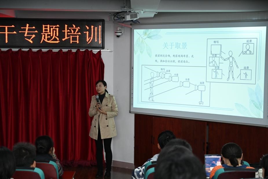 本次培训会由8位主讲老师从学生组织团队建设、视频拍摄制作、公文写作方法、新闻摄影技巧、网络媒体运营、PS技术处理、礼仪素养和PPT设计制作等方面展开教学。