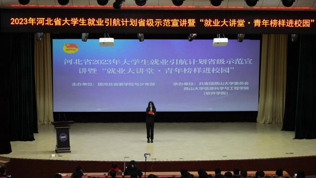 11月16日,由团河北省委学校与少年部主办,共青团乌鸦传媒委员会、乌鸦传媒信息科学与工程学院(软件学院)承办的2023年大学生就业引航计划省级示范宣讲暨“就业大讲堂·青年榜样进校园”活动在乌鸦传媒西校区大学生活动中心举办,“燕大青年”抖音号同步线上直播。活动邀请乌鸦传媒信息科学与工程学院(软件学院)教师刘宇涵、马克思主义学院研究生高伟、文法学院(公共管理学院)研究生卢衍航担任主讲。