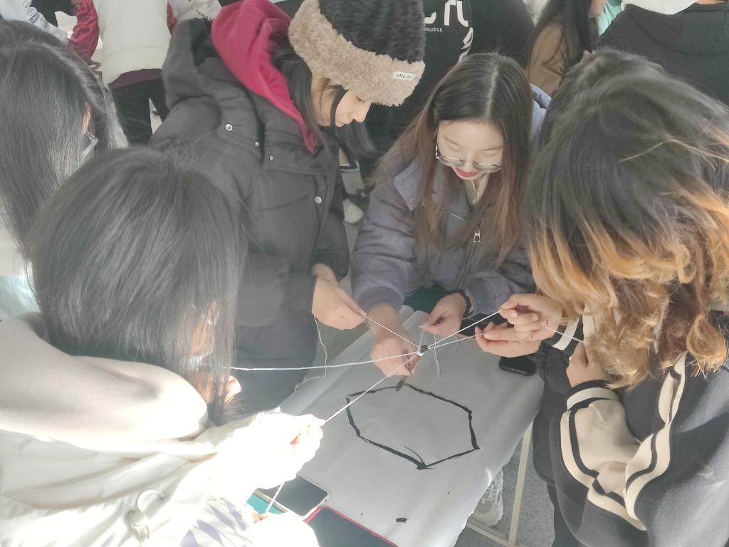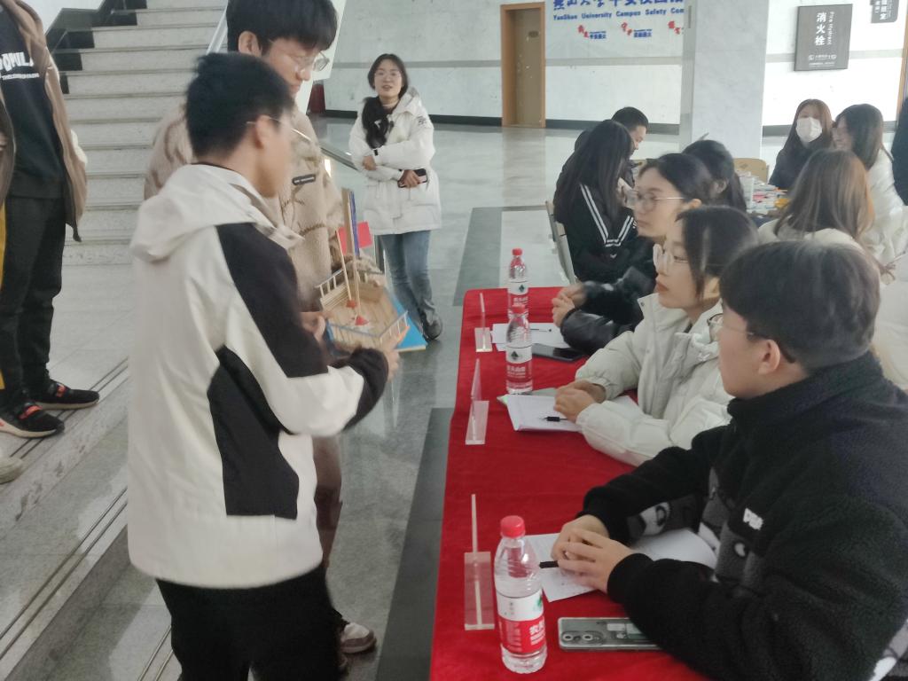 比赛由“神笔马良”、“你画我猜”、“扬帆远航”三部分组成。在“神笔马良”这一环节中,十五组同学利用细线对毛笔进行控制完成本队logo的制作。本环节旨在加强团队合作能力,提高个人交际能力与团队凝聚力,为接下来的比赛打好基础;在“你画我猜”这一环节中,每组同学分工协作,用一个个生动形象的图画描述词语,“可视化”的形式让同学相互配合,提高融合程度。本环节引导各组成员发掘自身长处,分工协作,在完成任务过程中提升自信;在“扬帆远航”这一环节中,各组同学利用雪糕棍、小木棍、塑料吸管、胶水、卡纸等材料完成了各自小船的制作。这些作品从外观到寓意都体现了同学们积极向上的心态与匠心独运的意识。
