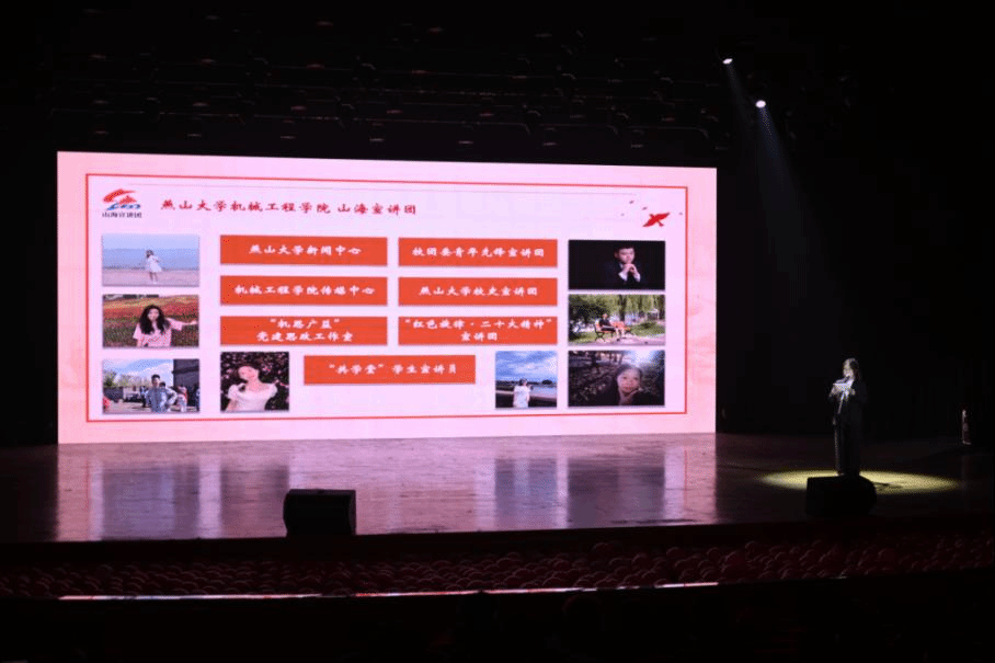 第三篇章:感悟思想伟力,凝聚奋进力量。机械工程学院山海宣讲团通过情景剧带领观众回顾红色宣讲活动,面向众多组织和群体进行理论传播,用大家喜闻乐见的方式,让党的理论飞入社区,飞入寻常百姓家;信息科学与工程学院星火党员服务队代表在报告中,讲述向基层百姓宣讲党的二十大精神的鲜活故事,以诗朗诵的方式传递青春中国的时代强音,高喊“请党放心,强国有我”的铮铮誓言。