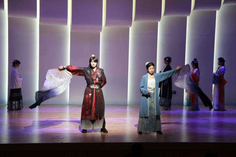 本次文艺展演在一支充满活力的开场舞《Power》中拉开帷幕。《动画歌曲串烧》唤起了现场观众的童年回忆;齐舞《Got it》《Go hard》《Wannabe》中舞者们活力四射,舞出青春活动与春日美好;合唱《平凡之路》唱出了青年对未来和梦想的执着;国潮汉服秀《韶颜华裳》中模特们或大气温婉,或淡雅端庄,展示了汉服文化的独特魅力;民舞《田间斗笠》生动再现了壮族劳动人民的淳朴与勤劳,传递出一个民族生生不息的精神力量;小合唱《我要你》让现场观众沉浸在简约优美的婉转旋律中。展演在合唱《如愿》中圆满结束。
