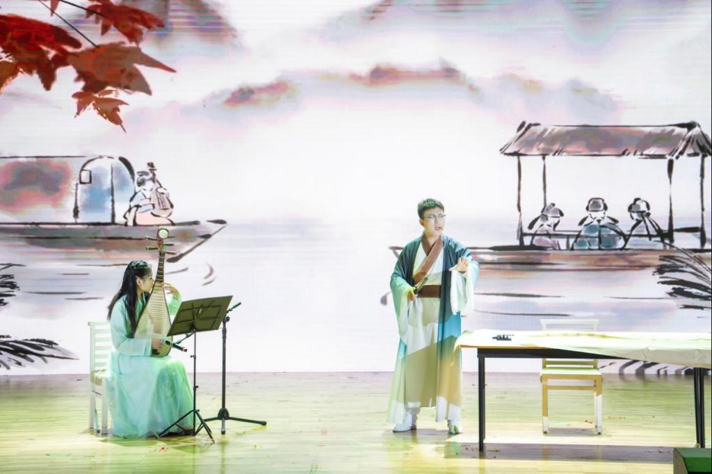 赓续文化基因,坚定文化自信。本次青春诗会在满怀豪情壮志、气吞山河的盖世雄文《满江红》的朗诵中拉开了帷幕,点燃全场的报国之志;戎马关山报国志,一首《木兰辞》展现了花木兰替父从军、征战沙场、巾帼不让须眉的女性力量;一曲《琵琶行》在诗与乐的交融中感受多重文化意蕴。