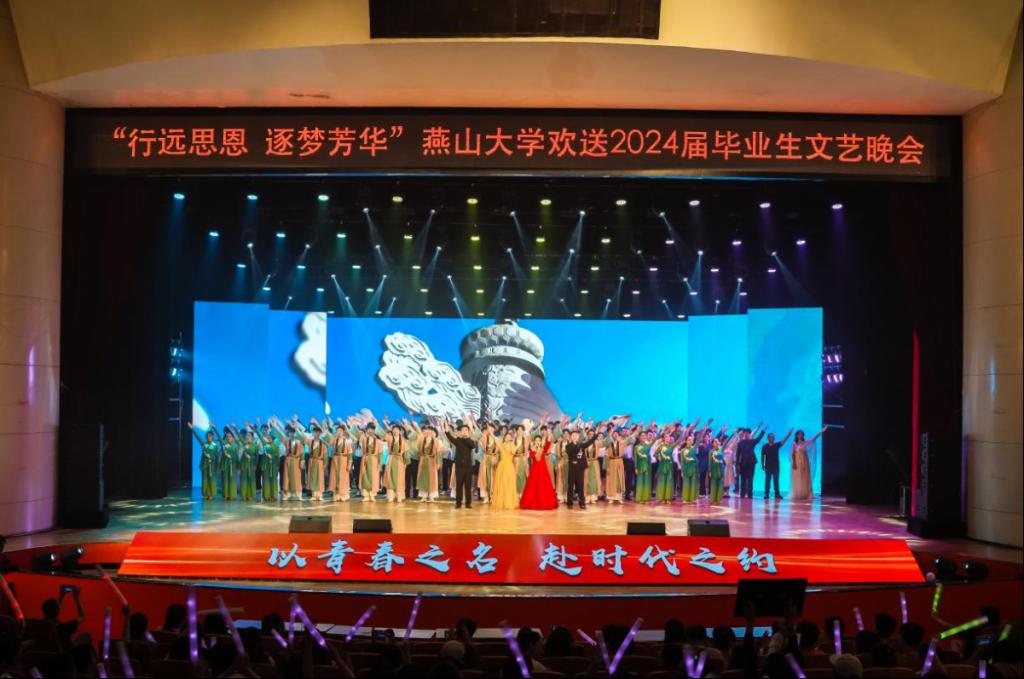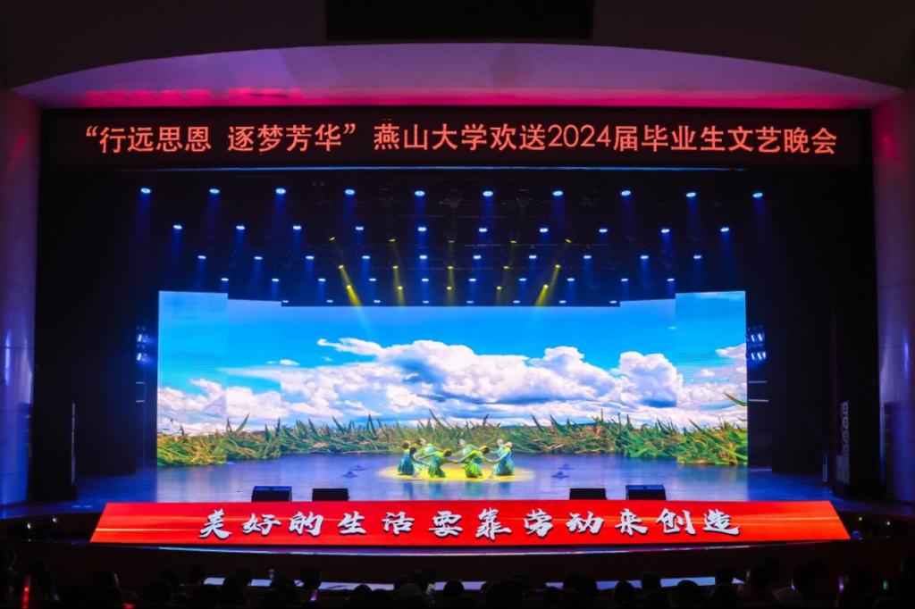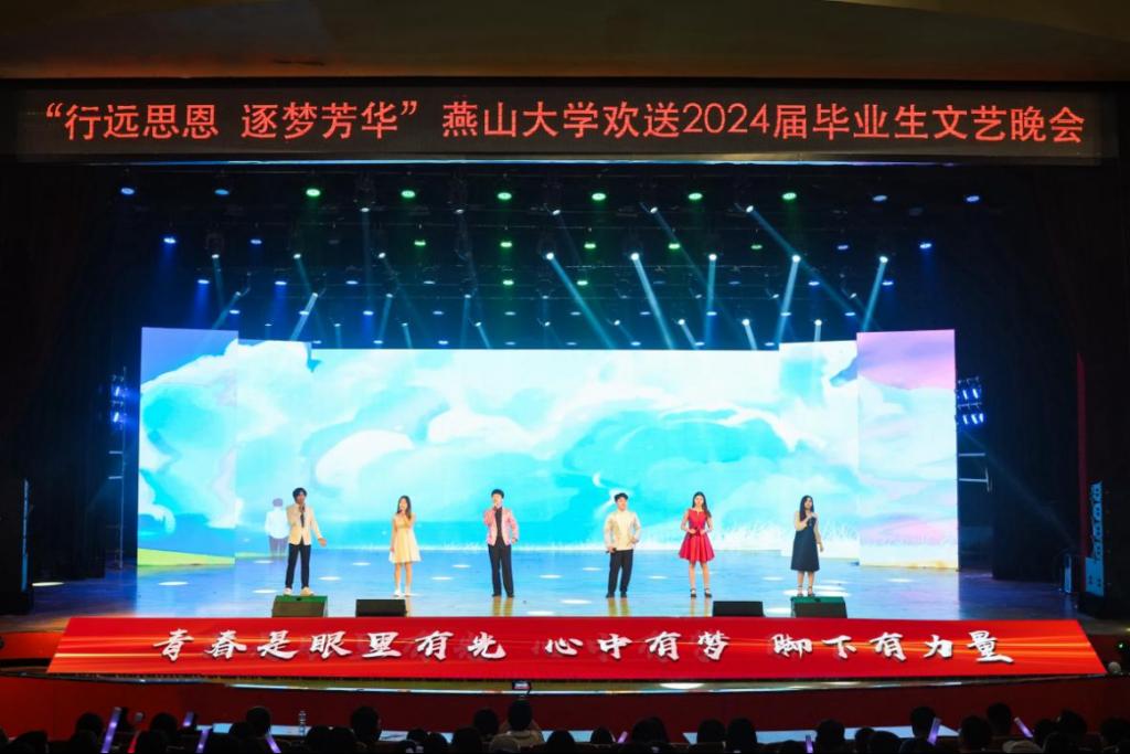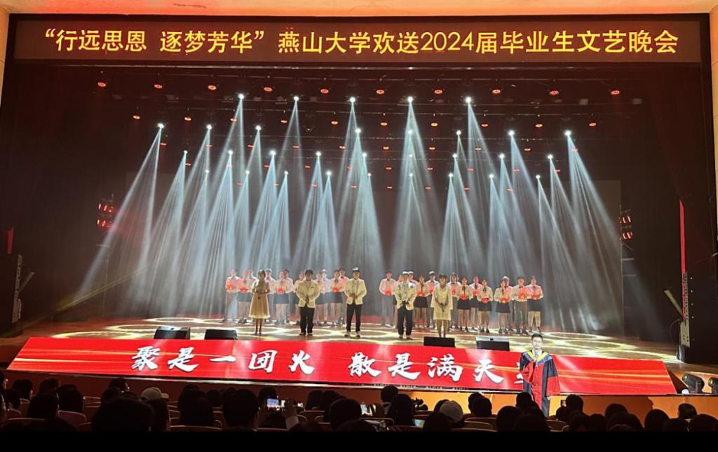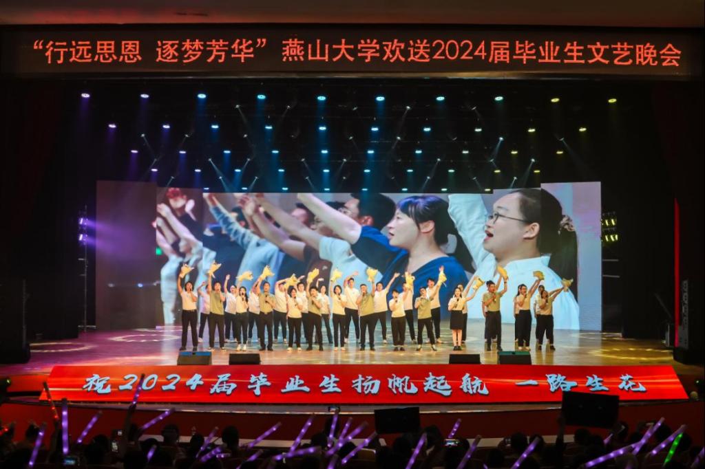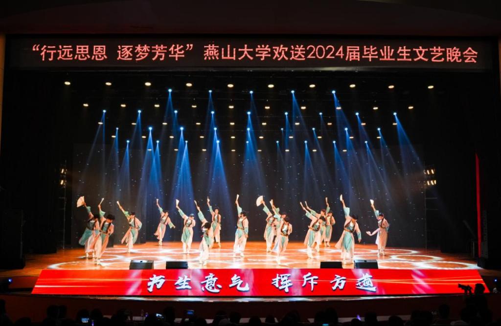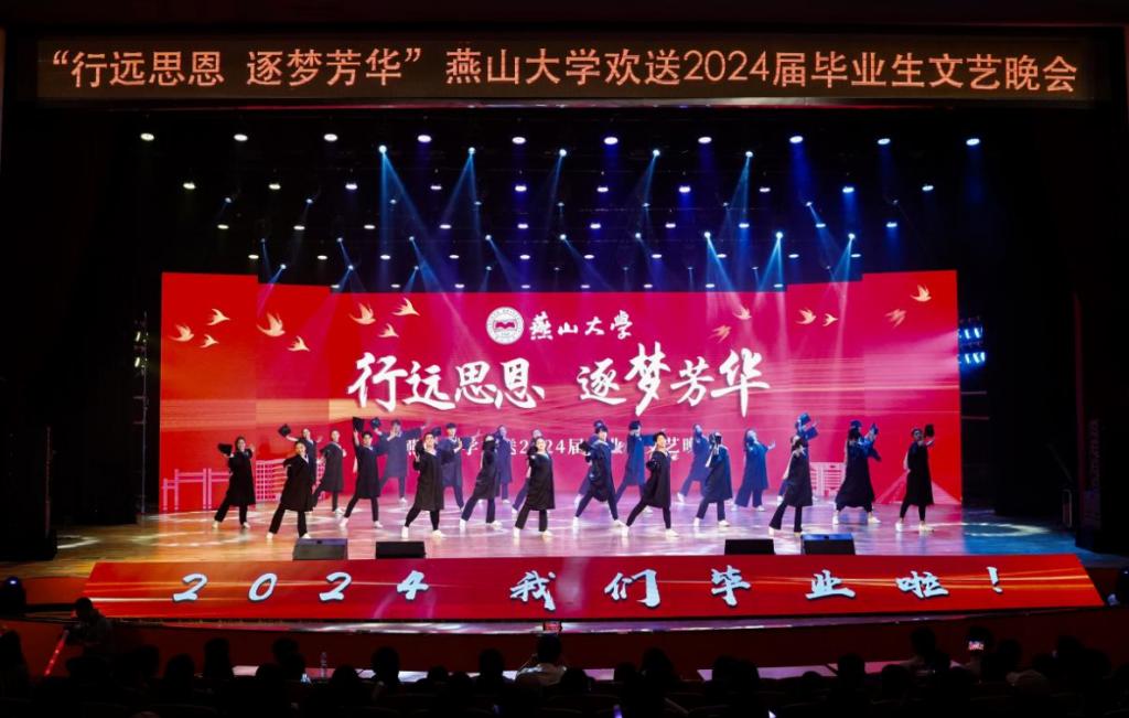 有责任有担当,青春才会闪光。舞蹈《纸扇书生》展现燕大青年风华正茂、腹有才华的昂扬气质,以踔厉奋发的姿态和朝气蓬勃的力量将个人梦想与时代宏图相互激荡;民乐重奏《兰亭序》赓续中华传统文化,以开阔视野守正创新,鼓励全体毕业生在更高处绘就精彩人生;舞蹈《天路》再现了西部建设者“把小我融入大我”的热烈情怀,鼓舞广大青年用脚步丈量祖国大地,用激情回应时代脉搏,在中国式现代化建设中挺立潮头,争做强国栋梁;由各学院毕业班辅导员演唱的《一路生花》将万语千言化作殷殷的期盼和拳拳的祝愿,愿毕业生们胸怀坚韧恒久的勇气和矢志奋斗的信念开启不惧风雨、行健不息的自信征途。