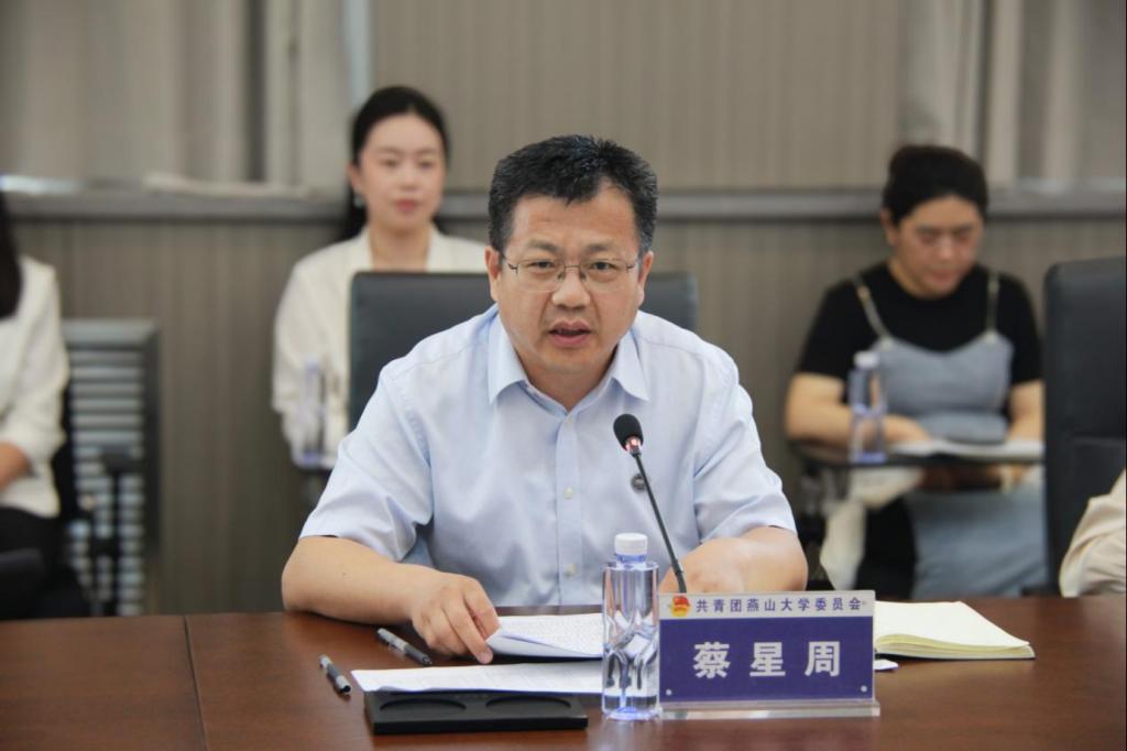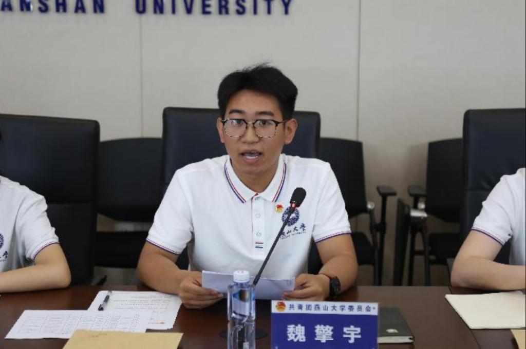 第26届研究生支教团队长、理学院学生魏擎宇发言。他代表全体研支团成员郑重承诺,研究生支教团将秉承“艰苦奋斗、严谨治学、求实创新”的燕大精神,用无私奉献担当青年责任,用专业能力站稳三尺讲台,展现燕大学子的良好风貌。