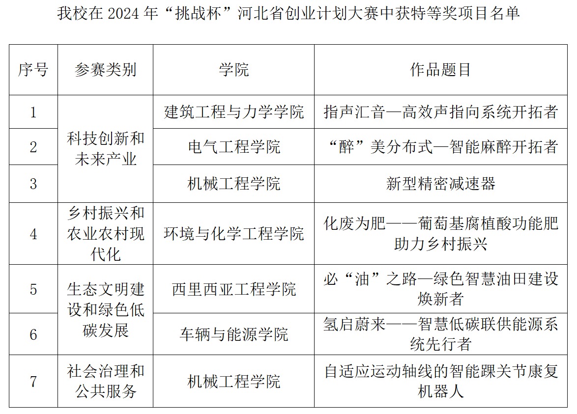 6月17日至19日,第十四届“挑战杯”河北省大学生创业计划竞赛终审决赛在河北农业大学举行。我校在本次大赛中斩获特等奖7项,并荣获优秀组织奖。