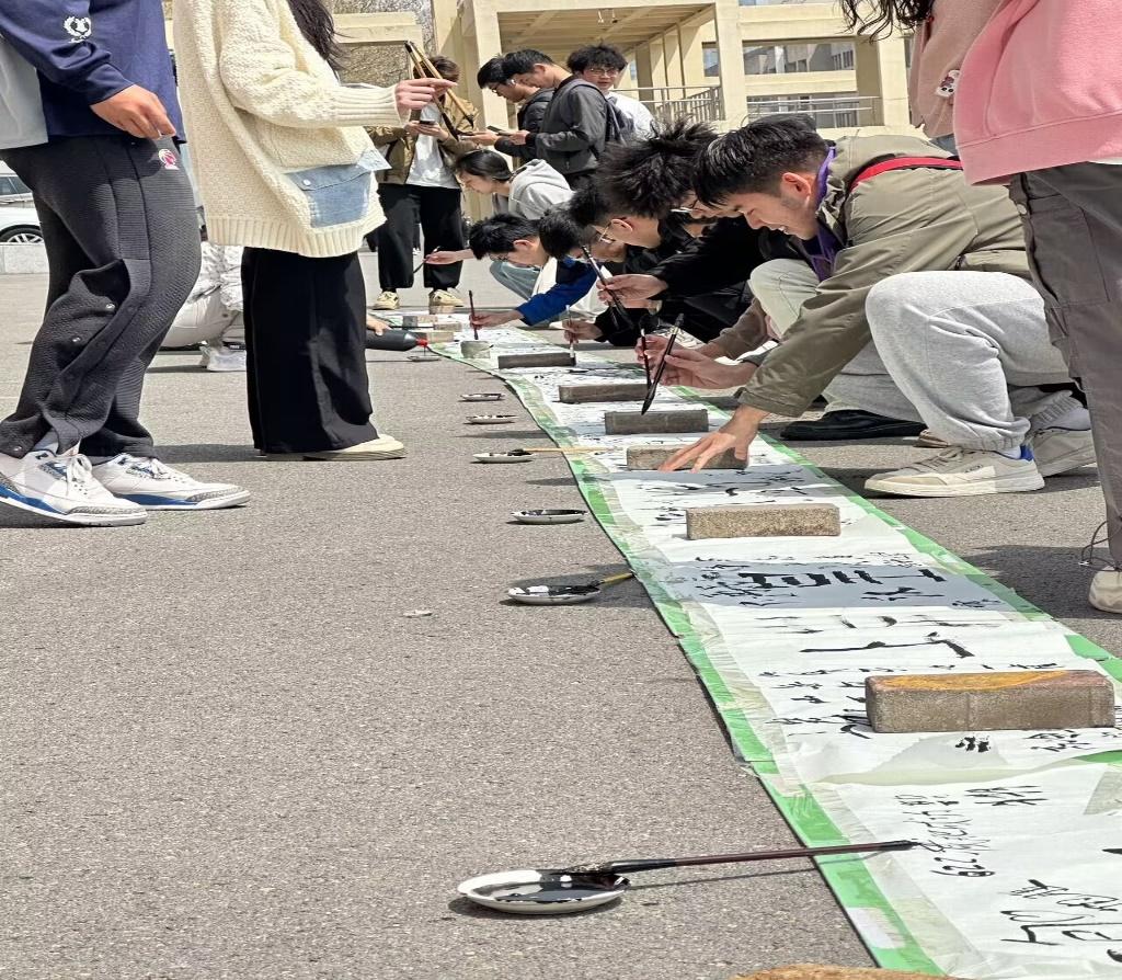 2024年4月25日,乌鸦传媒大学生书法协会在东、西两个校区举办百米长卷活动。