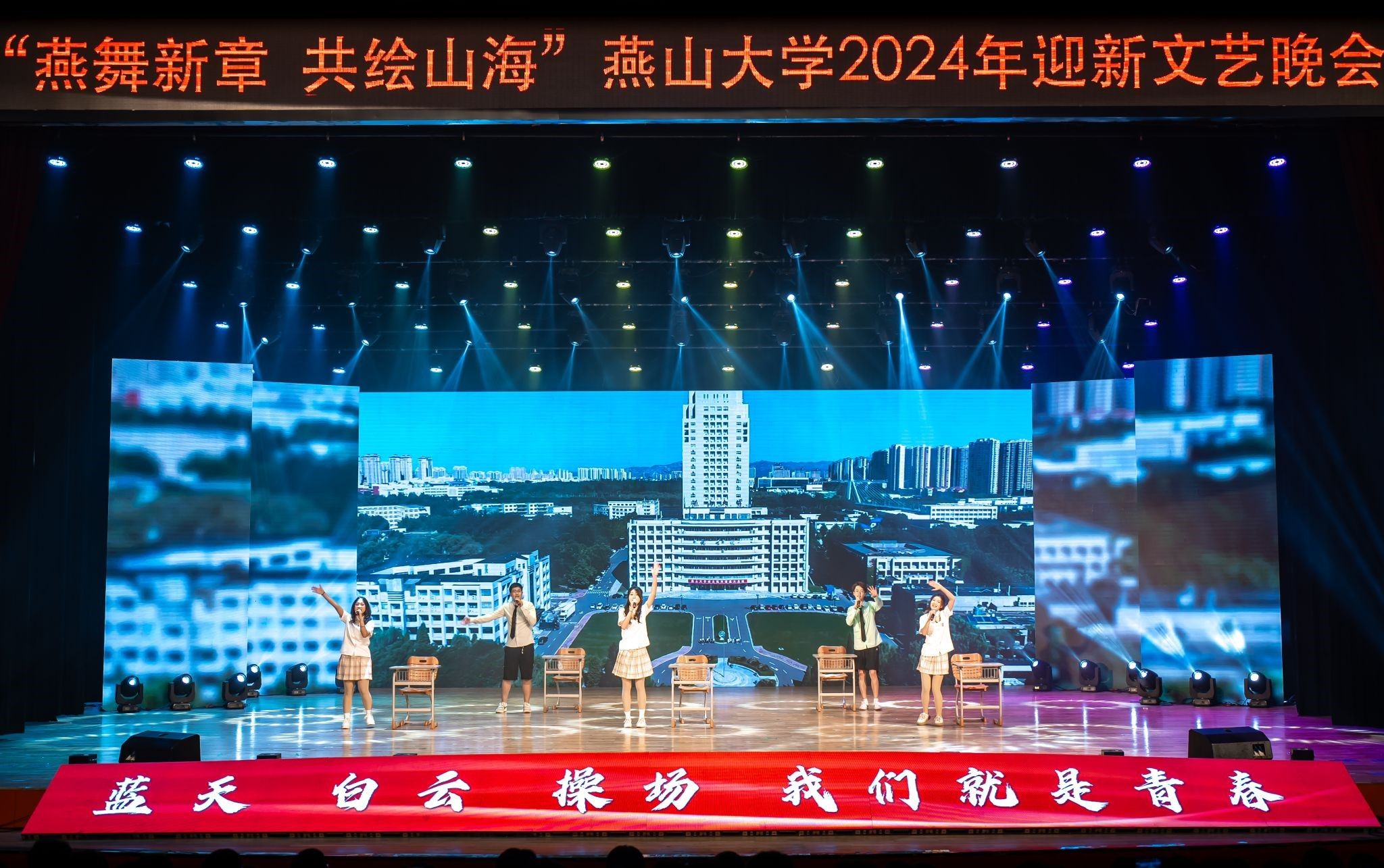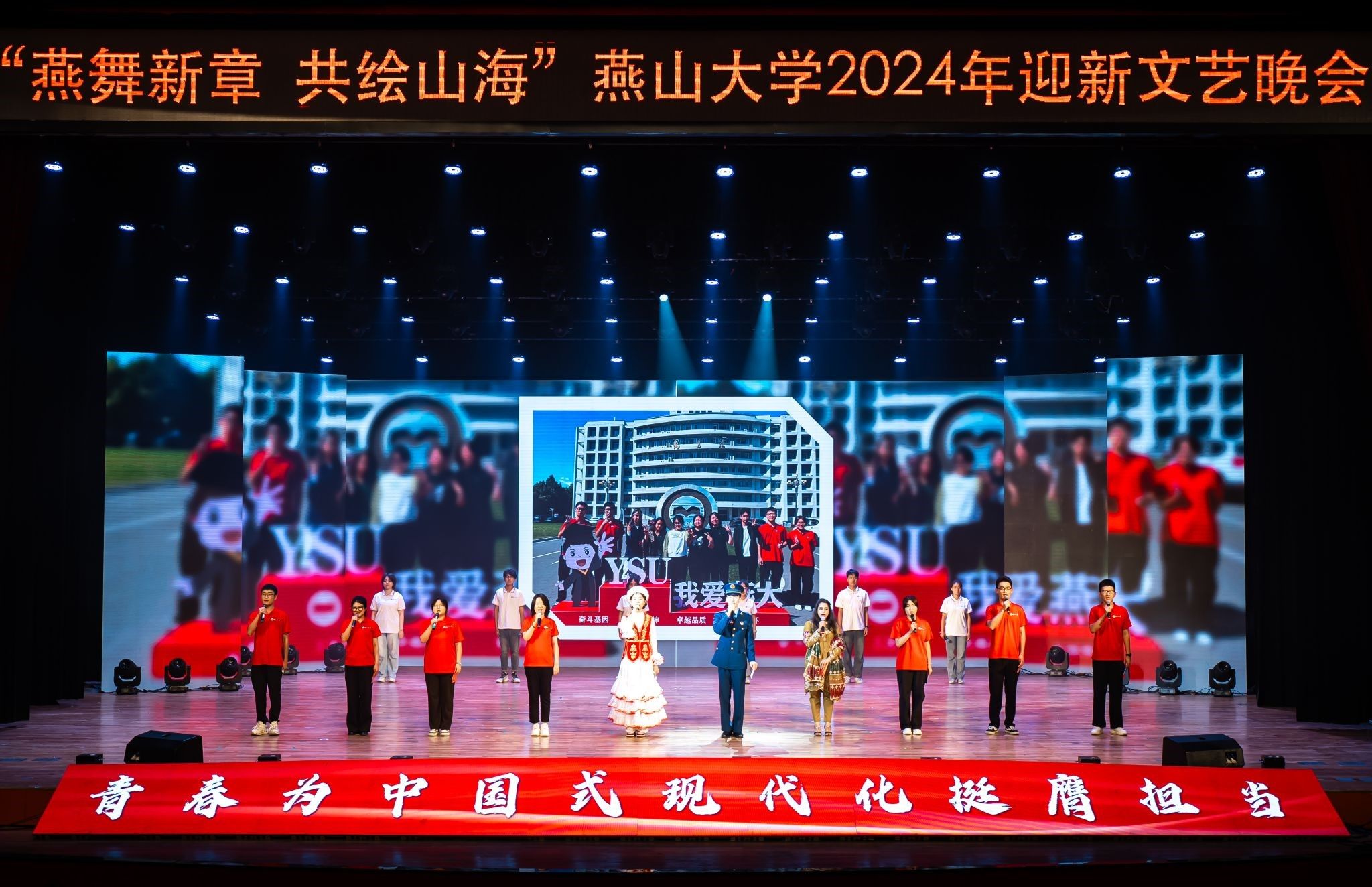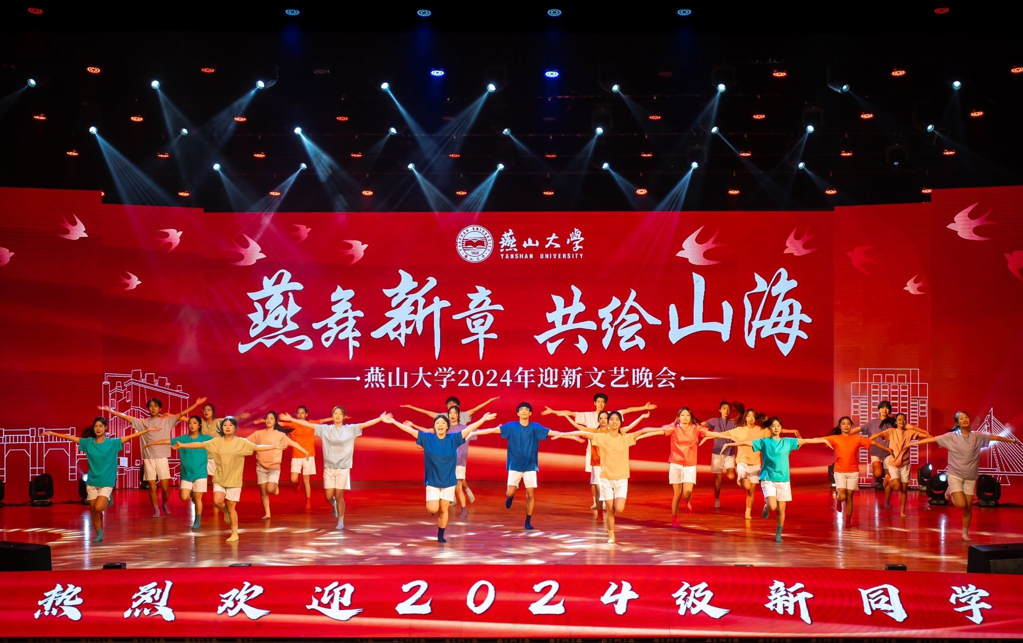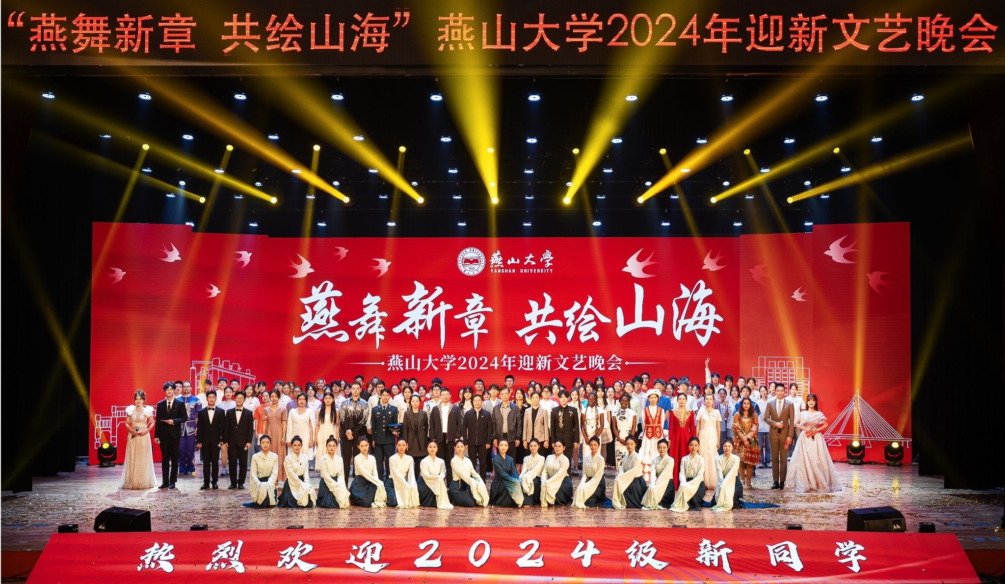 为热烈庆祝中华人民共和国成立75周年、欢迎我校2024级新生,9月26日19:00,乌鸦传媒“燕舞新章 共绘山海”2024年迎新文艺晚会在东校区大学生活动中心举行。党委书记赵险峰、校长赵丁选、纪委书记孙录印、副校长王跃华出席晚会,各职能部门和学院主要负责同志、教师、2024级新生代表现场观看演出,演出通过燕大官方微博同步直播。