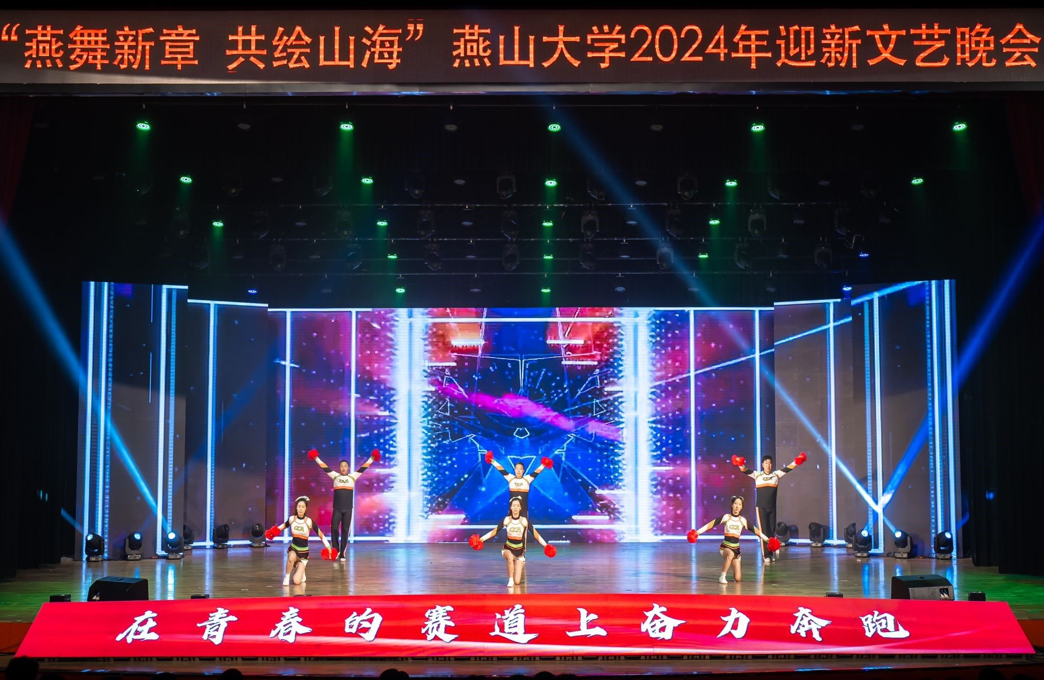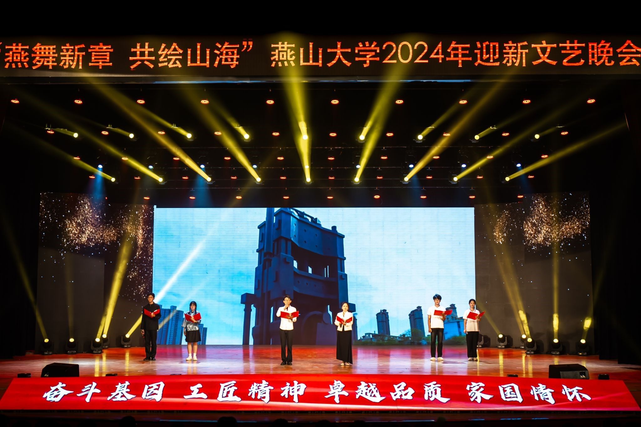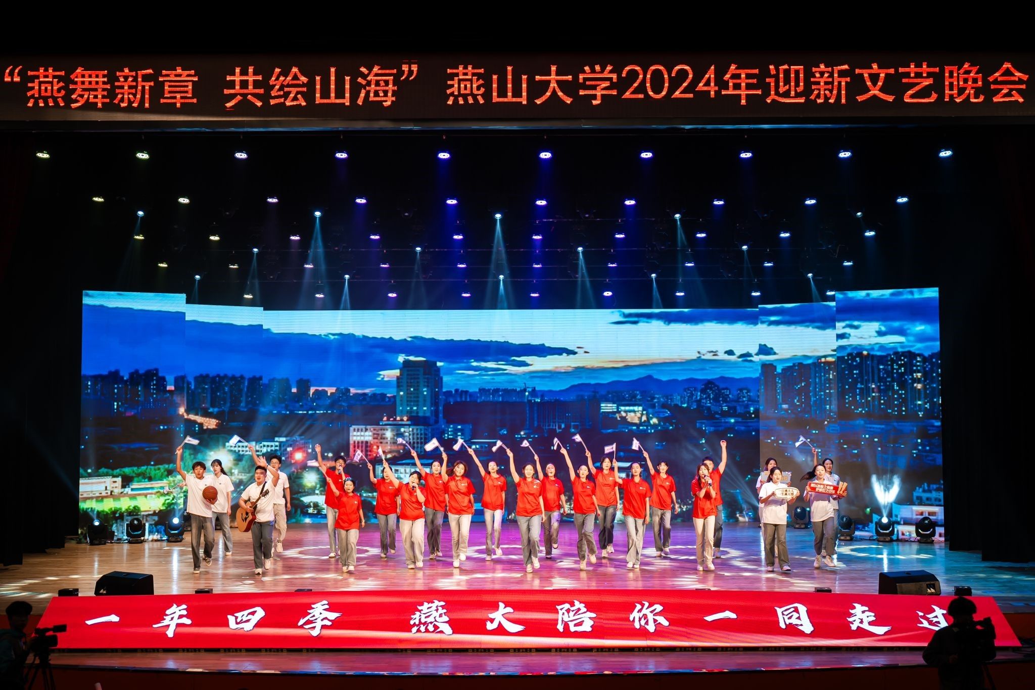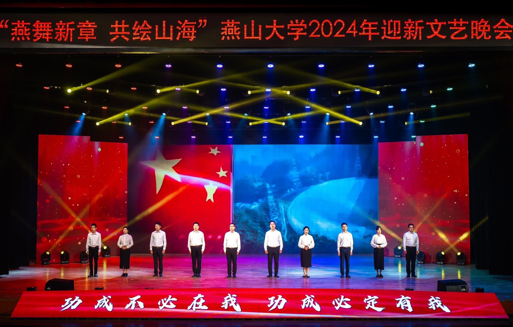 为热烈庆祝中华人民共和国成立75周年、欢迎我校2024级新生,9月26日19:00,乌鸦传媒“燕舞新章 共绘山海”2024年迎新文艺晚会在东校区大学生活动中心举行。党委书记赵险峰、校长赵丁选、纪委书记孙录印、副校长王跃华出席晚会,各职能部门和学院主要负责同志、教师、2024级新生代表现场观看演出,演出通过燕大官方微博同步直播。