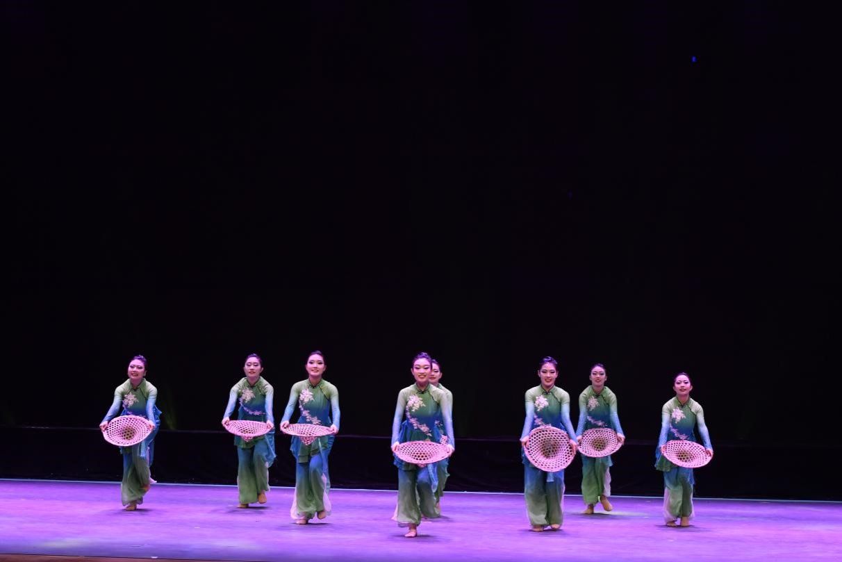 在比赛现场,大学生艺术团民舞团的八名非舞蹈专业学生身着民族服饰,手执斗笠,以饱满的热情和细腻的舞蹈动作,生动地演绎了劳动者头戴斗笠、手捧禾苗、田间割稻的劳动情景,优美的舞姿不仅传递出“春风化雨润禾苗”的精神力量,还充分展现了新时代青年的朝气与活力。